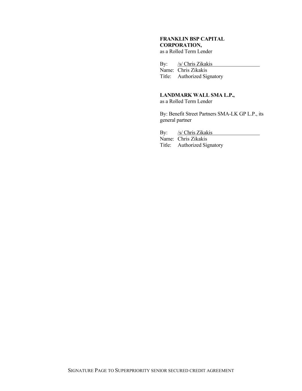 SIGNATURE PAGE TO SUPERPRIORITY SENIOR SECURED CREDIT AGREEMENT FRANKLIN BSP CAPITAL CORPORATION, as a Rolled Term Lender By: /s/ Chris Zikakis Name: Chris Zikakis Title: Authorized Signatory LANDMARK WALL SMA L.P., as a Rolled Term Lender By: Benefit Street Partners SMA-LK GP L.P., its general partner By: /s/ Chris Zikakis Name: Chris Zikakis Title: Authorized Signatory