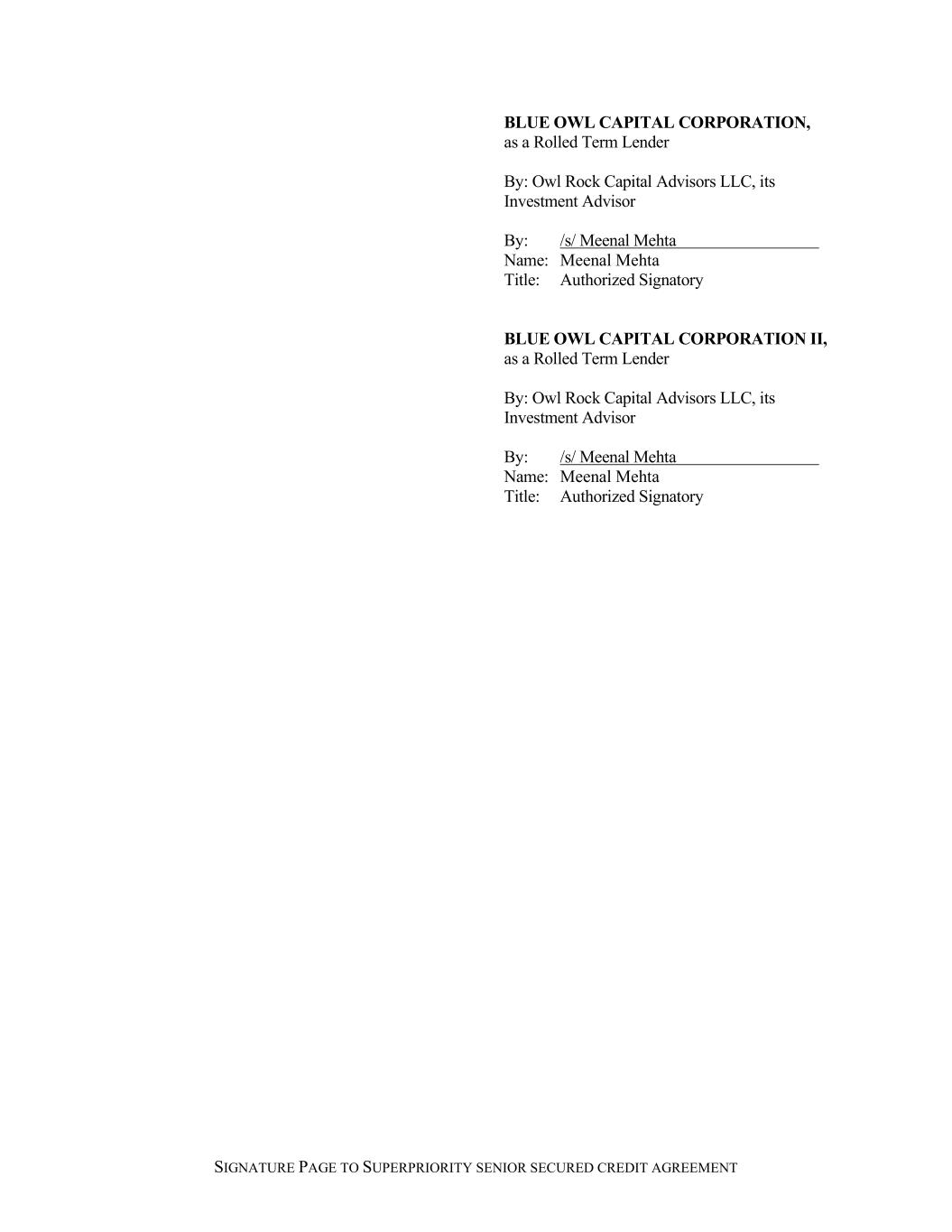 SIGNATURE PAGE TO SUPERPRIORITY SENIOR SECURED CREDIT AGREEMENT BLUE OWL CAPITAL CORPORATION, as a Rolled Term Lender By: Owl Rock Capital Advisors LLC, its Investment Advisor By: /s/ Meenal Mehta Name: Meenal Mehta Title: Authorized Signatory BLUE OWL CAPITAL CORPORATION II, as a Rolled Term Lender By: Owl Rock Capital Advisors LLC, its Investment Advisor By: /s/ Meenal Mehta Name: Meenal Mehta Title: Authorized Signatory