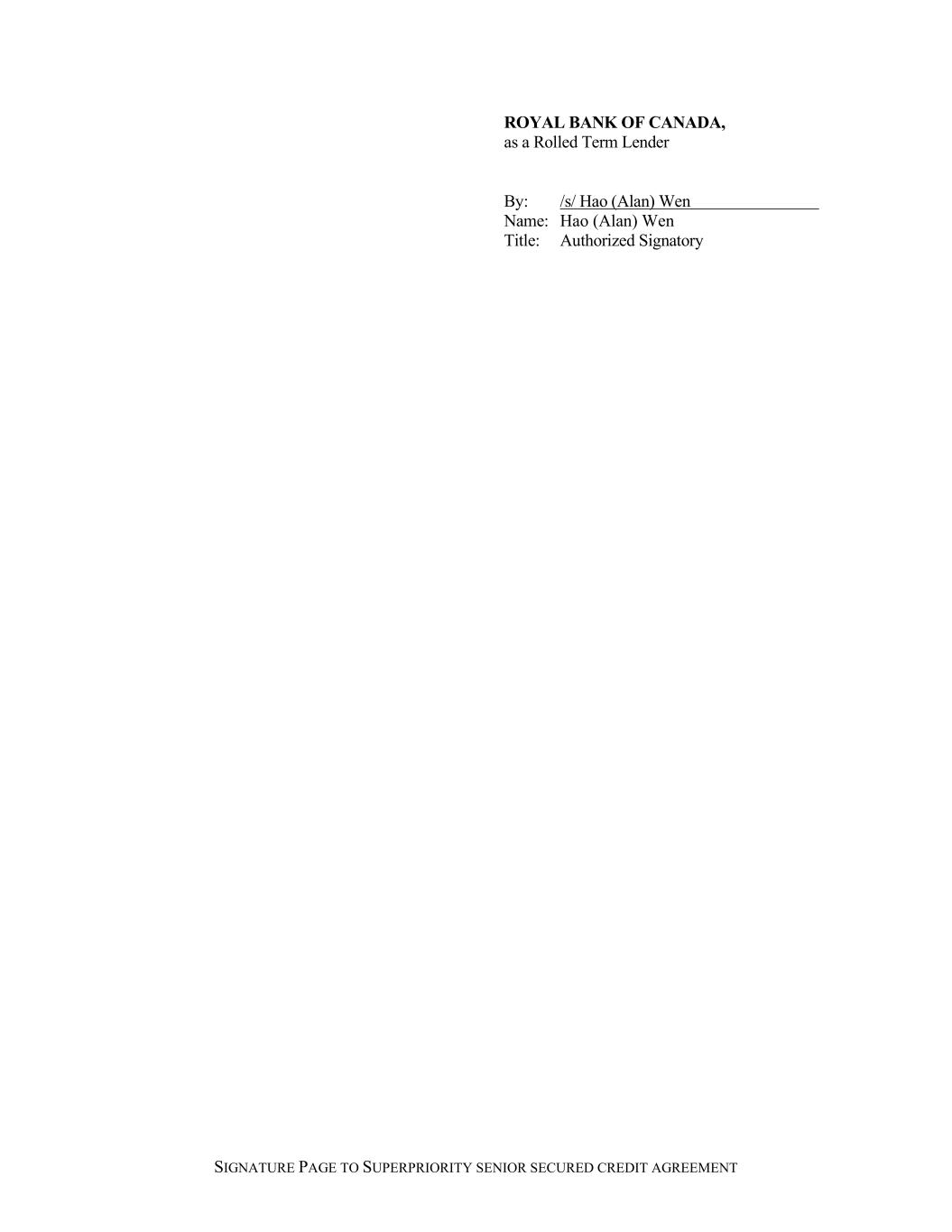 SIGNATURE PAGE TO SUPERPRIORITY SENIOR SECURED CREDIT AGREEMENT ROYAL BANK OF CANADA, as a Rolled Term Lender By: /s/ Hao (Alan) Wen Name: Hao (Alan) Wen Title: Authorized Signatory
