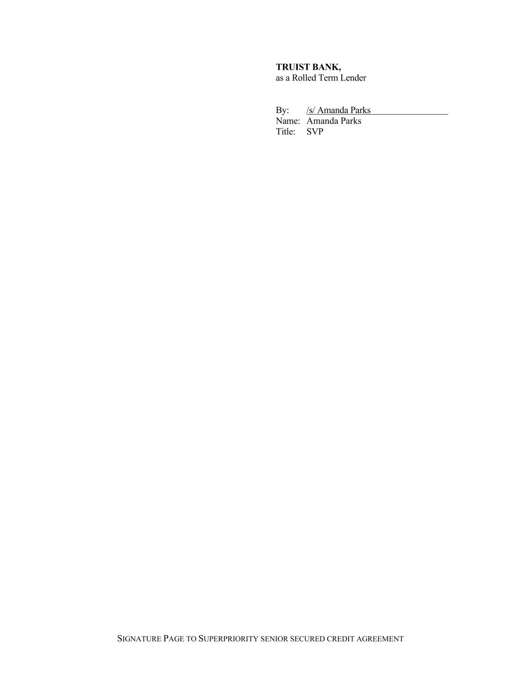 SIGNATURE PAGE TO SUPERPRIORITY SENIOR SECURED CREDIT AGREEMENT TRUIST BANK, as a Rolled Term Lender By: /s/ Amanda Parks Name: Amanda Parks Title: SVP