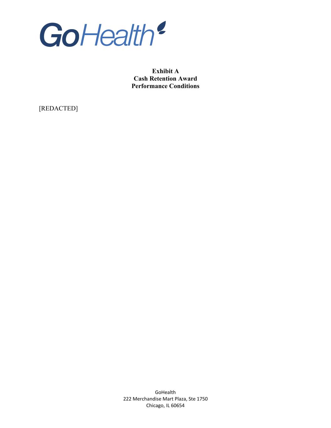 GoHealth 222 Merchandise Mart Plaza, Ste 1750 Chicago, IL 60654 Exhibit A Cash Retention Award Performance Conditions [REDACTED]