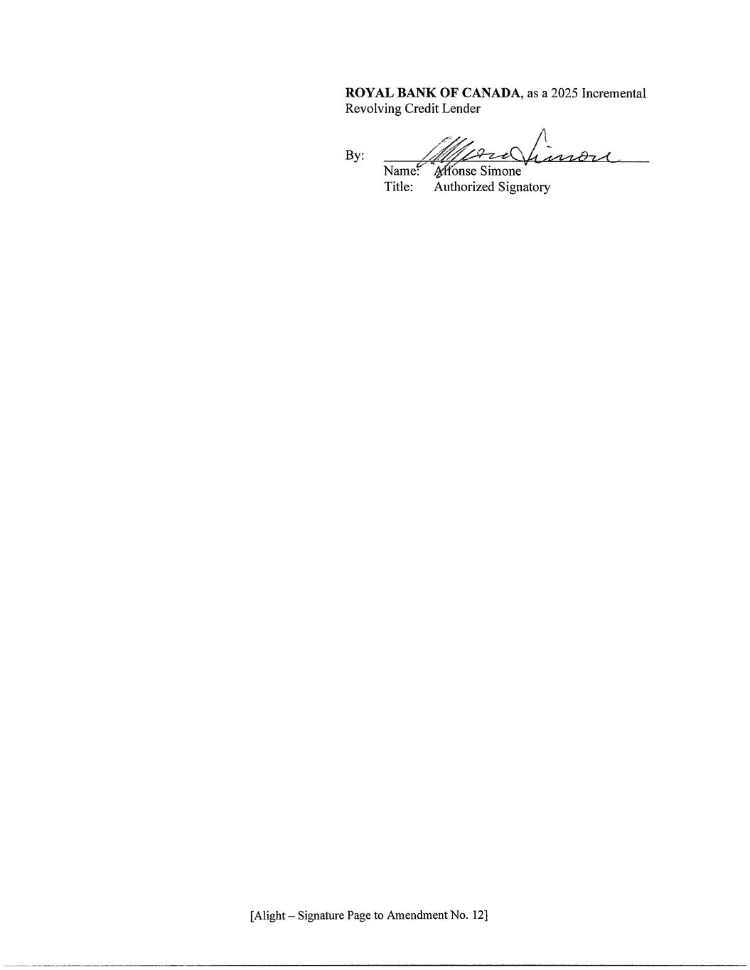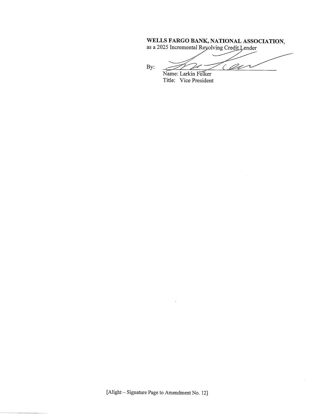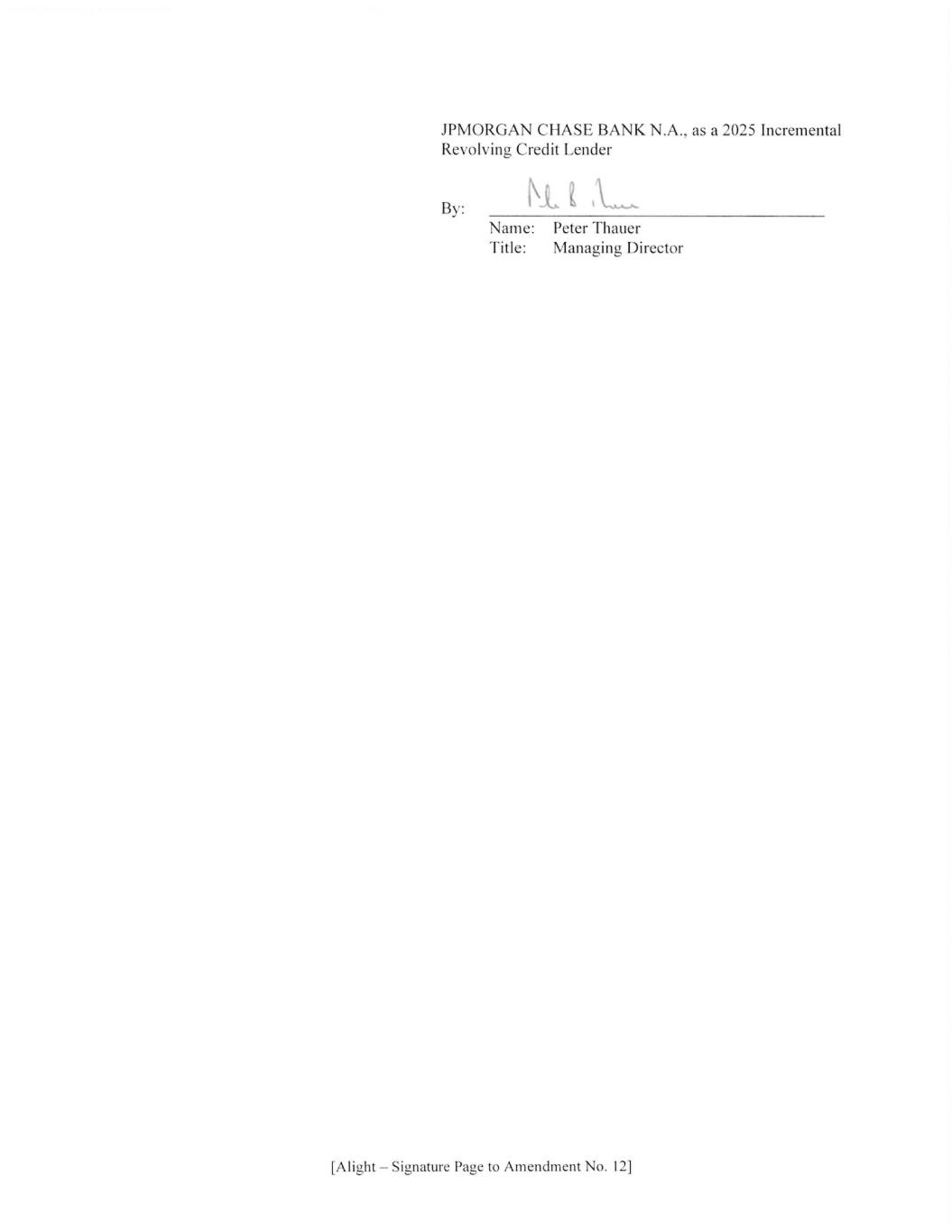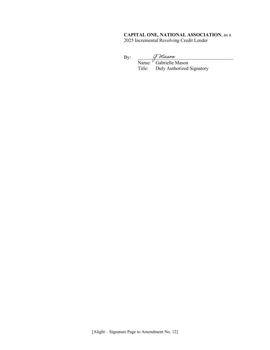 [Alight – Signature Page to Amendment No. 12] CAPITAL ONE, NATIONAL ASSOCIATION, as a 2025 Incremental Revolving Credit Lender By: Name: Gabrielle Mason Title: Duly Authorized Signatory