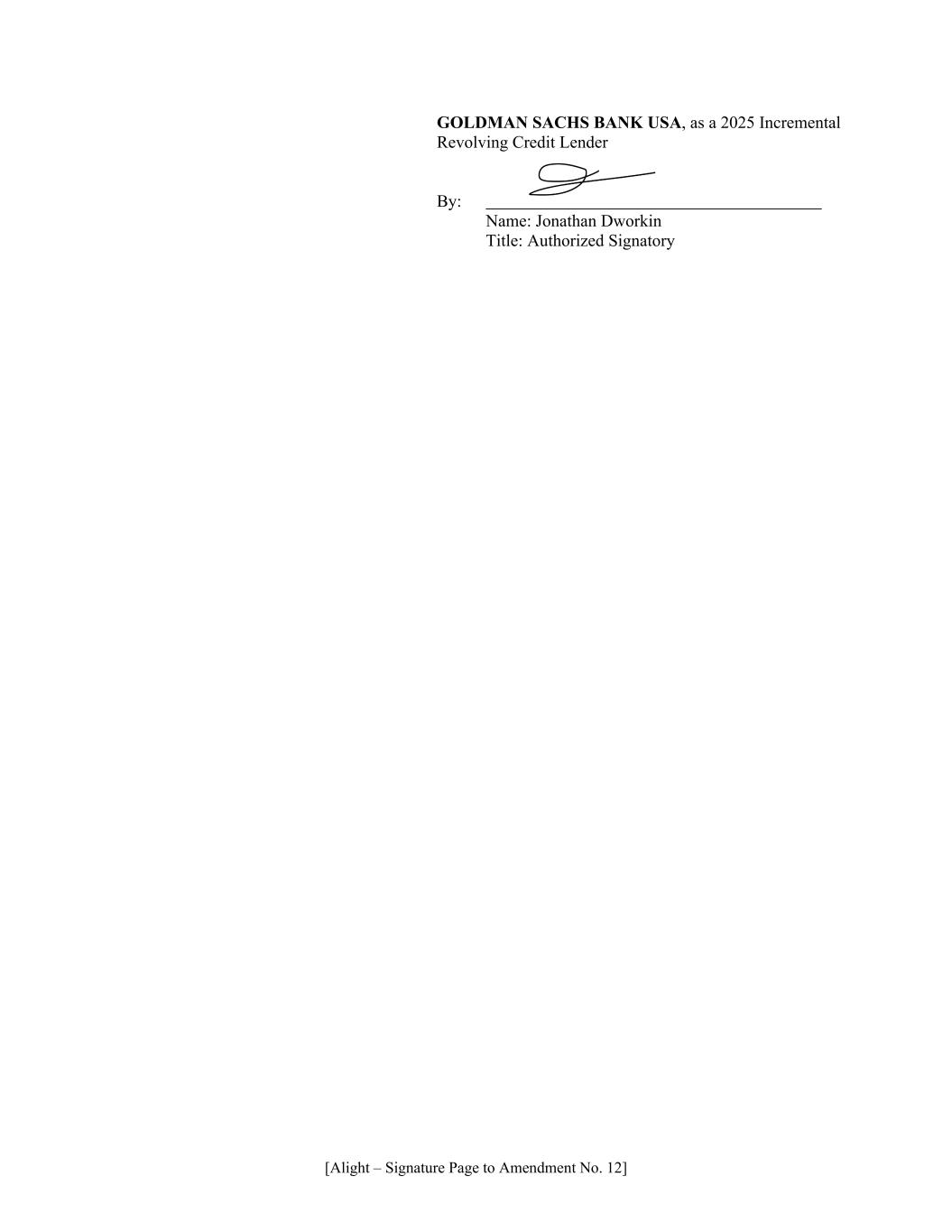 [Alight – Signature Page to Amendment No. 12] GOLDMAN SACHS BANK USA, as a 2025 Incremental Revolving Credit Lender By: Name: Jonathan Dworkin Title: Authorized Signatory