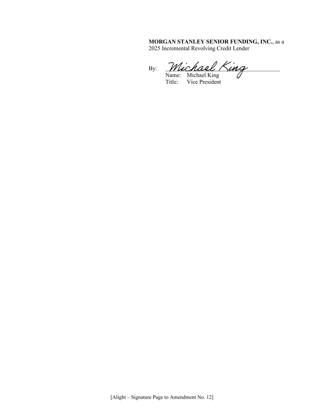 [Alight – Signature Page to Amendment No. 12] MORGAN STANLEY SENIOR FUNDING, INC., as a 2025 Incremental Revolving Credit Lender By: Name: Michael King Title: Vice President