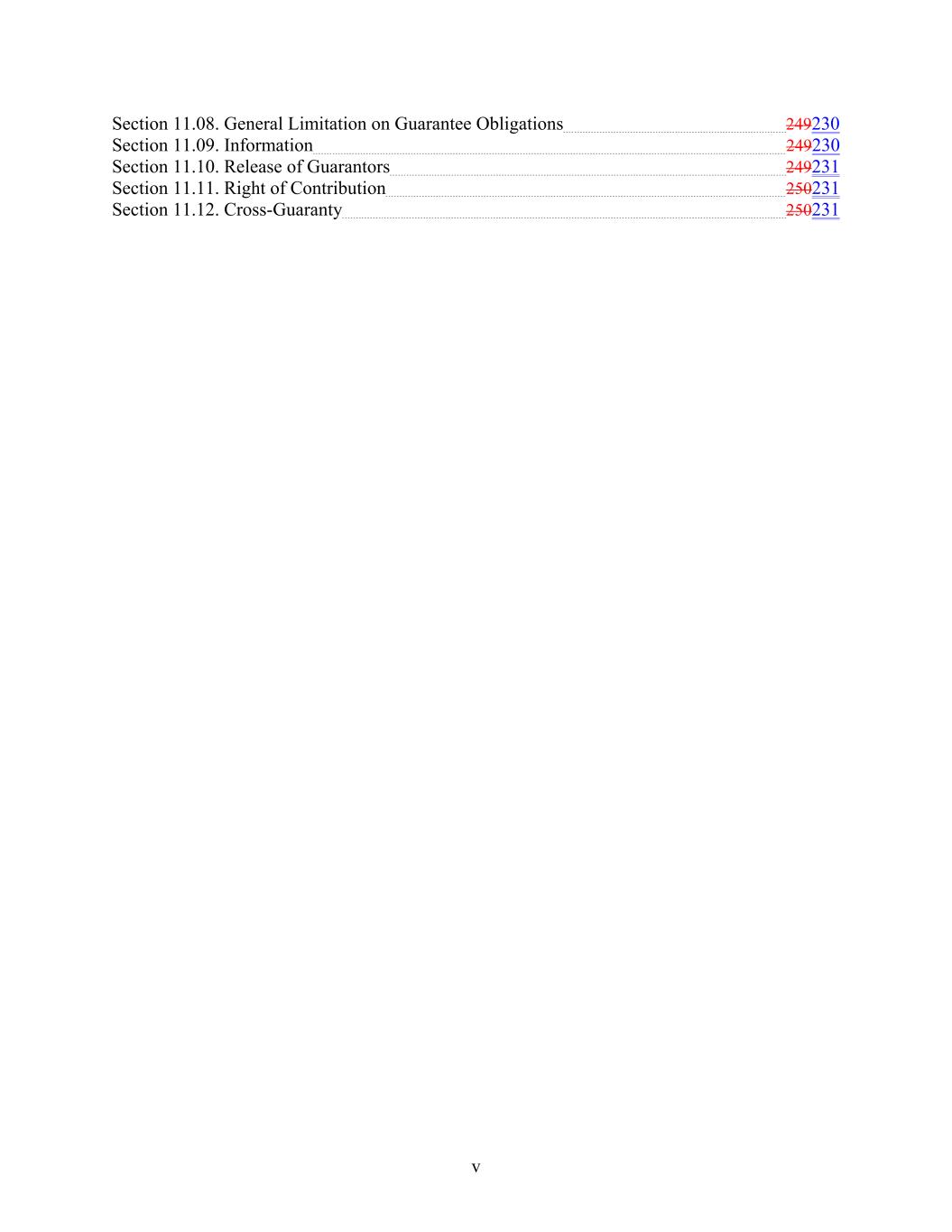 Section 11.08. General Limitation on Guarantee Obligations 249230Section 11.09. Information 249230Section 11.10. Release of Guarantors 249231Section 11.11. Right of Contribution 250231Section 11.12. Cross-Guaranty 250231v