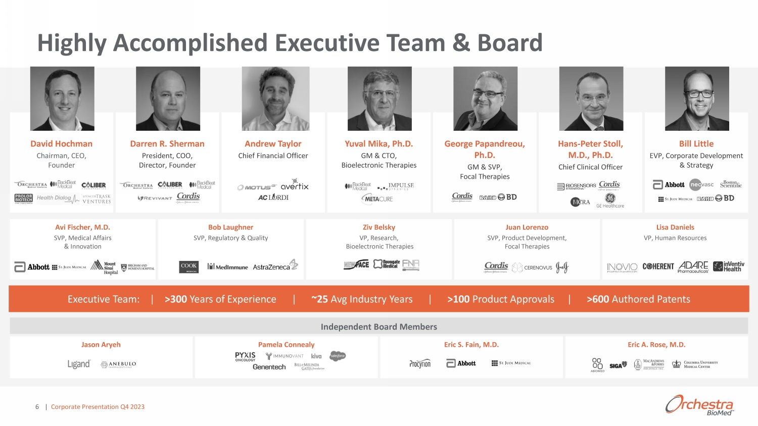 Orchestra BioMed Development ŽŵŵĞƌĐŝĂůŝnjĂƚŝŽŶ Strategic Partners Shared Benefits Innovation Secure substantial long - term royalties Outsource commercialization Multiple pipeline opportunities Improve patient lives Accelerate development Leverage expertise & resources Enable new growth opportunities Outsource development Minimize P&L dilution Orchestra BioMed’s Partnership - Enabled Model Benefits All 4 ͮ ŽƌƉŽƌĂƚĞWƌĞƐĞŶƚĂƚŝŽŶY ϰϮϬϮϯ