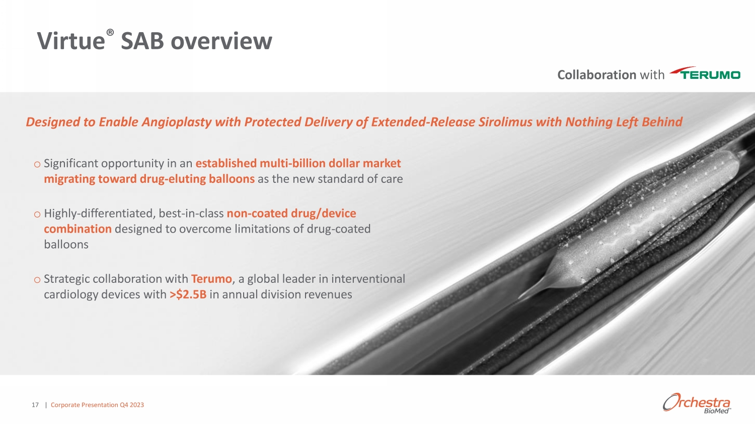 Virtue® Sirolimus AngioInfusion Ρ Balloon (SAB) ϭϲ | Corporate Presentation Q4 2023