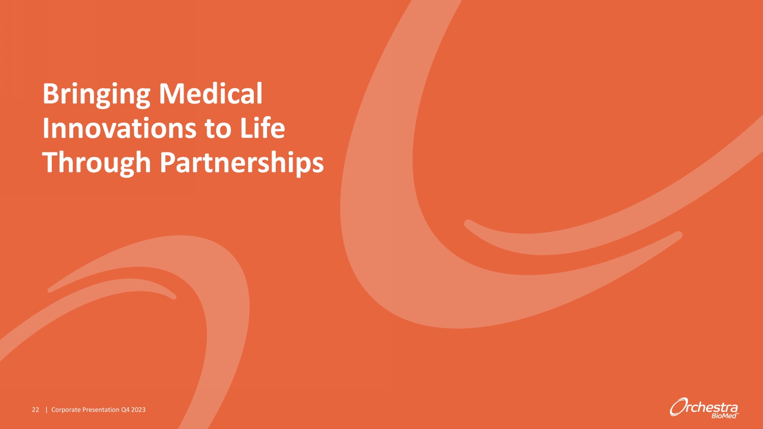 Bringing Medical Innovations to Life Through Partnerships 22 | Corporate Presentation Q 4 2023