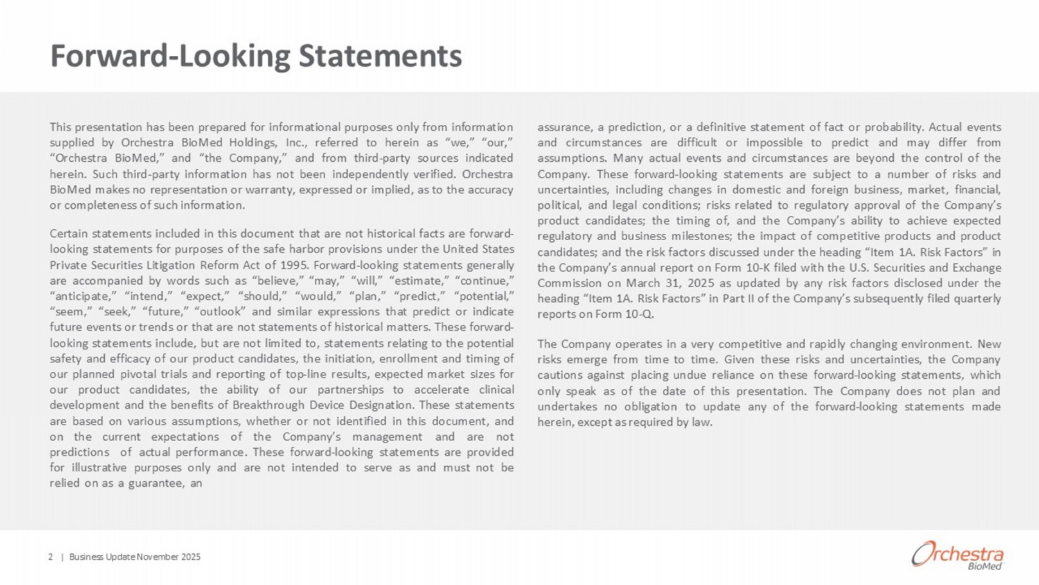Orchestra BioMed Business Update November 2025 Nasdaq: OBIO
