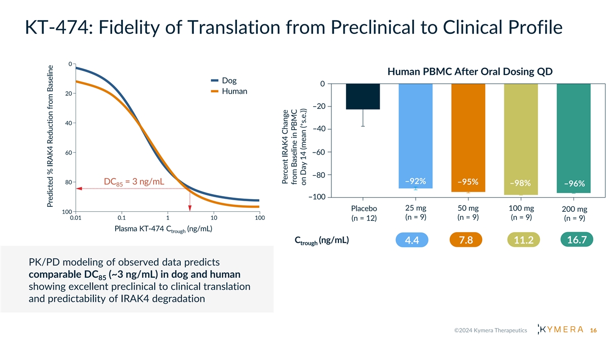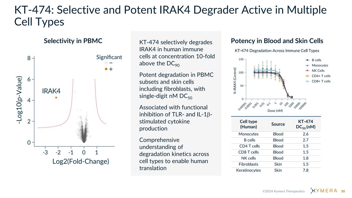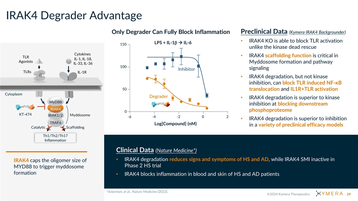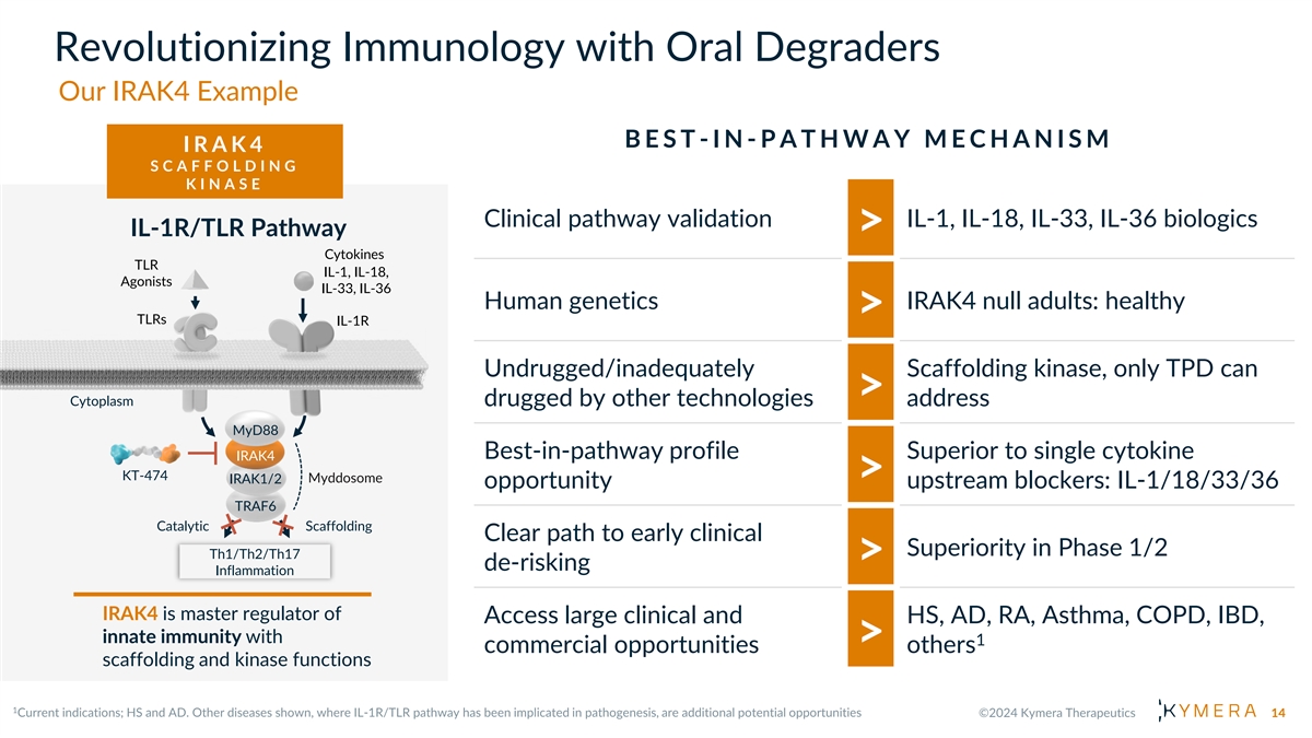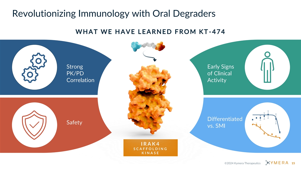 Revolutionizing Immunology with Oral Degraders W H A T W E H A V E L E A R N E D F R O M K T -474 Strong Early Signs PK/PD of Clinical Correlation Activity Differentiated Safety vs. SMI I R A K 4 S C A F F O L D I N G K I N A S E 15