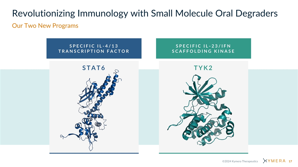 Revolutionizing Immunology with Small Molecule Oral Degraders Our Two New Programs S P E C I F I C I L - 4 / 1 3 S P E C I F I C I L - 2 3 / I F N T R A N S C R I P T I O N F A C T O R S C A F F O L D I N G K I N A S E S T A T 6 T Y K 2 17