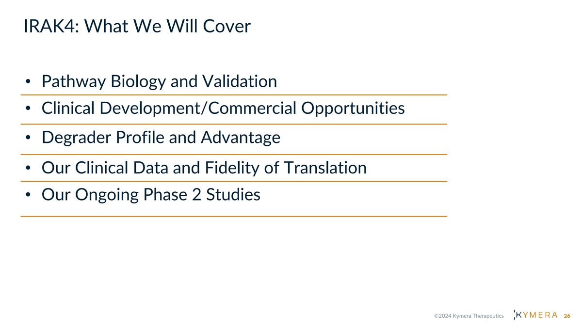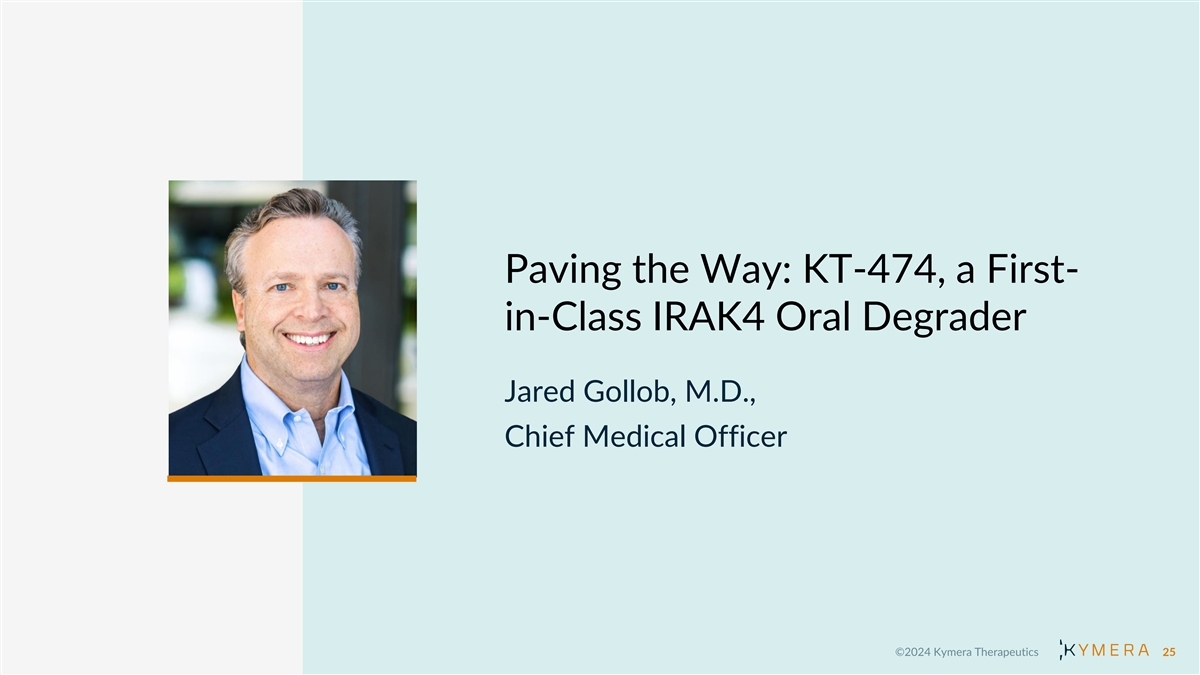 Paving the Way: KT-474, a First- in-Class IRAK4 Oral Degrader Jared Gollob, M.D., Chief Medical Officer 25
