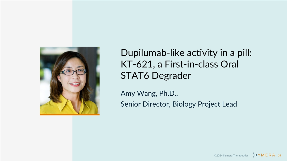 Dupilumab-like activity in a pill: KT-621, a First-in-class Oral STAT6 Degrader Amy Wang, Ph.D., Senior Director, Biology Project Lead 39
