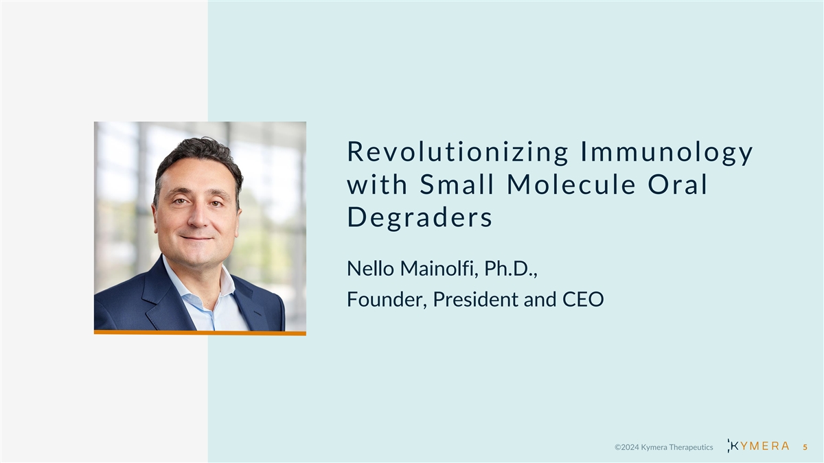 Revolutionizing Immunology with Small Molecule Oral Degraders Nello Mainolfi, Ph.D., Founder, President and CEO 5
