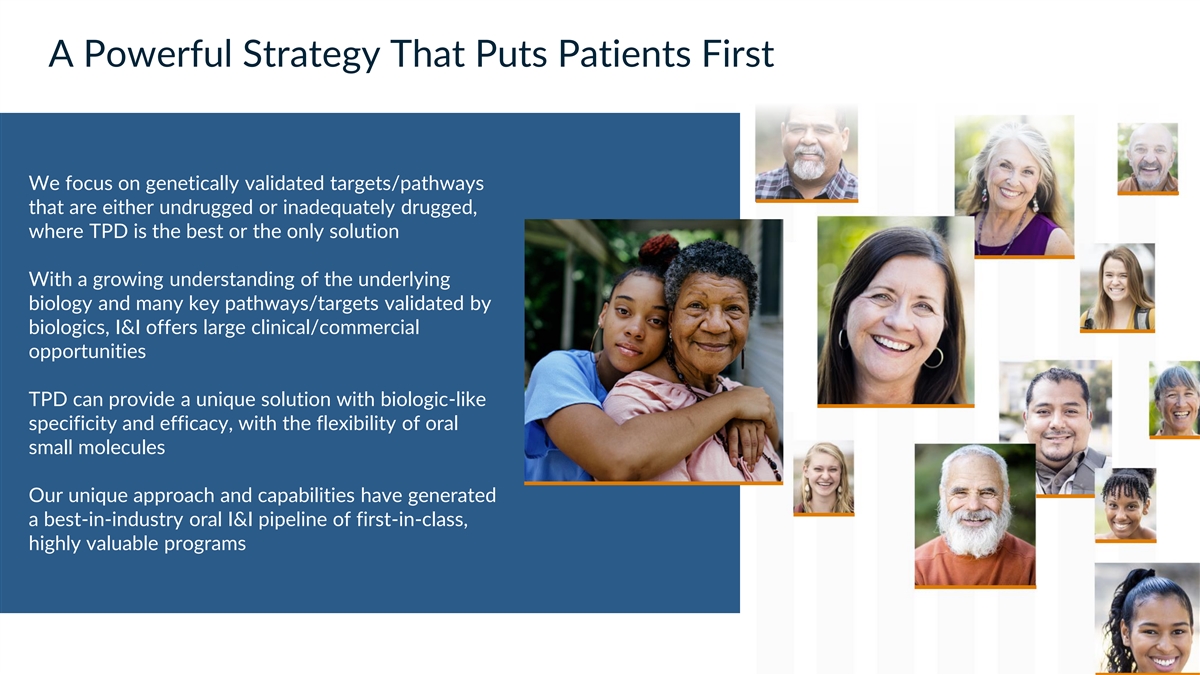 A Powerful Strategy That Puts Patients First We focus on genetically validated targets/pathways that are either undrugged or inadequately drugged, where TPD is the best or the only solution With a growing understanding of the underlying biology and many key pathways/targets validated by biologics, I&I offers large clinical/commercial opportunities TPD can provide a unique solution with biologic-like specificity and efficacy, with the flexibility of oral small molecules Our unique approach and capabilities have generated a best-in-industry oral I&I pipeline of first-in-class, highly valuable programs 67