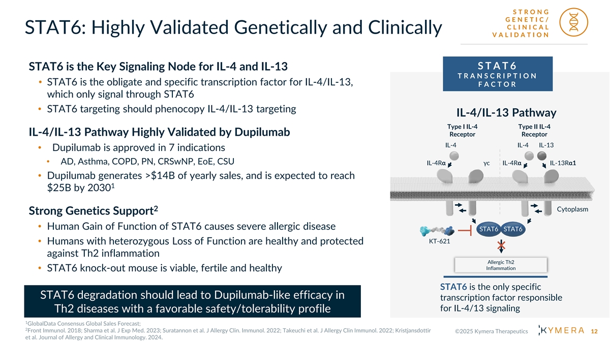 STAT6: An Ideal Immunology Target S T A T 6 T R ANS C R I P T I O N F AC T O R Strong genetic/clinical validation Undrugged or inadequately drugged targets Large clinical/commercial opportunities Clear path to early clinical differentiation 11