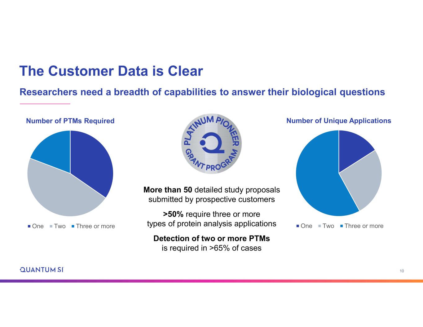 9 Specialized Platforms With High Capital Costs Limit Adoption Outside of Core Labs in Proteomics Many specialized platforms needed to fully interrogate the proteome Technical tradeoffs when selecting between the breadth of protein coverage and depth of insights High capital costs with the top-end instruments costing $1M or more each Manual laboratory and data analysis workflows limit the number of laboratories capable of performing proteomics