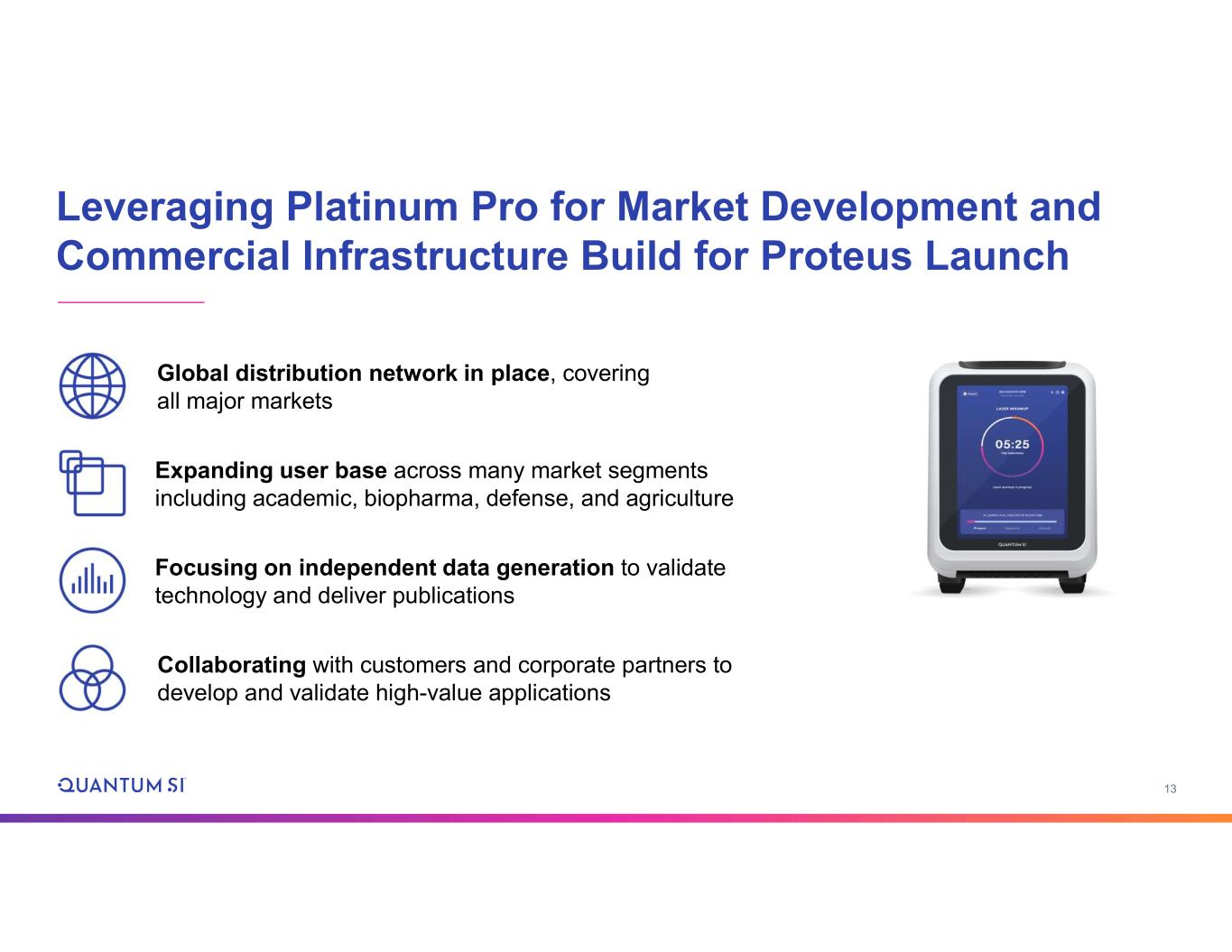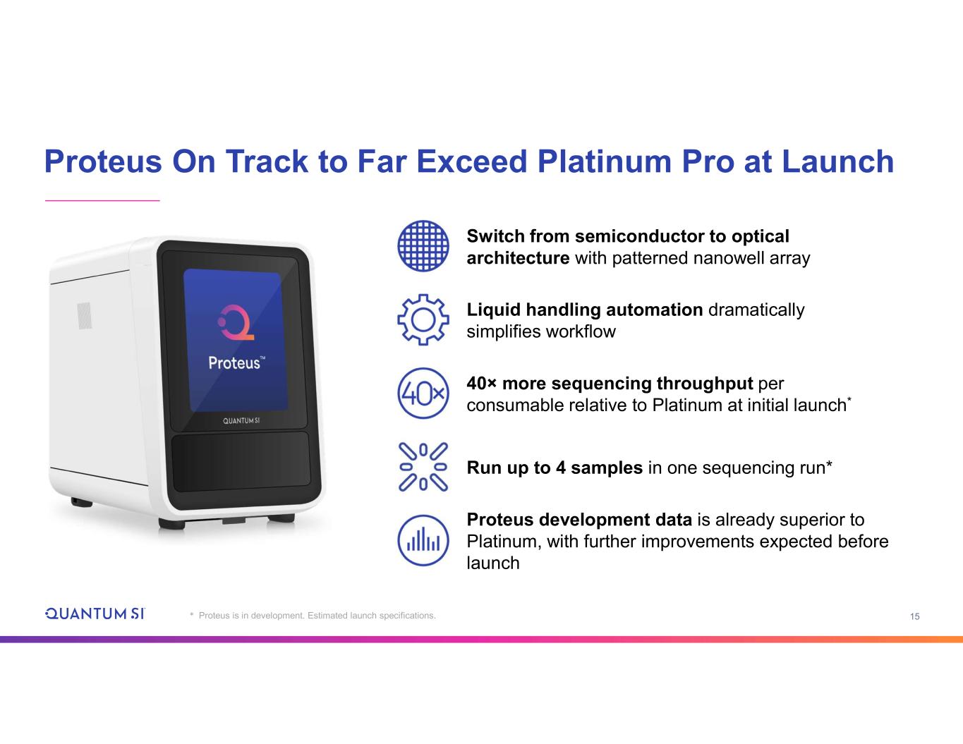 13 Leveraging Platinum Pro for Market Development and Commercial Infrastructure Build for Proteus Launch Global distribution network in place, covering all major markets Expanding user base across many market segments including academic, biopharma, defense, and agriculture Focusing on independent data generation to validate technology and deliver publications Collaborating with customers and corporate partners to develop and validate high-value applications