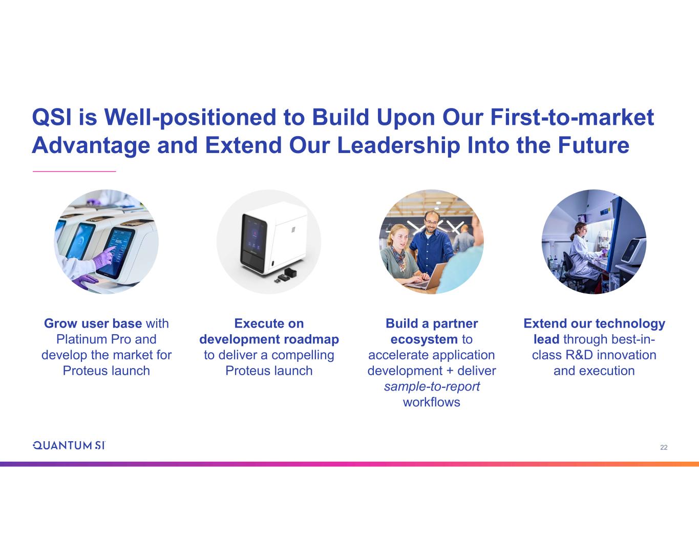 21 Proteus Architecture Supports Our Long-term Platform Roadmap Requirements Proteus 2.0 (up to 10B) Proteus (80M+) Proteus Plus (up to 320M) Consumable architecture scales to billions of wells 10× sequencing output from assay improvements alone Future instruments capable of up to 10B reads Instrument roadmap is designed to make NGPS the core technology in proteomics
