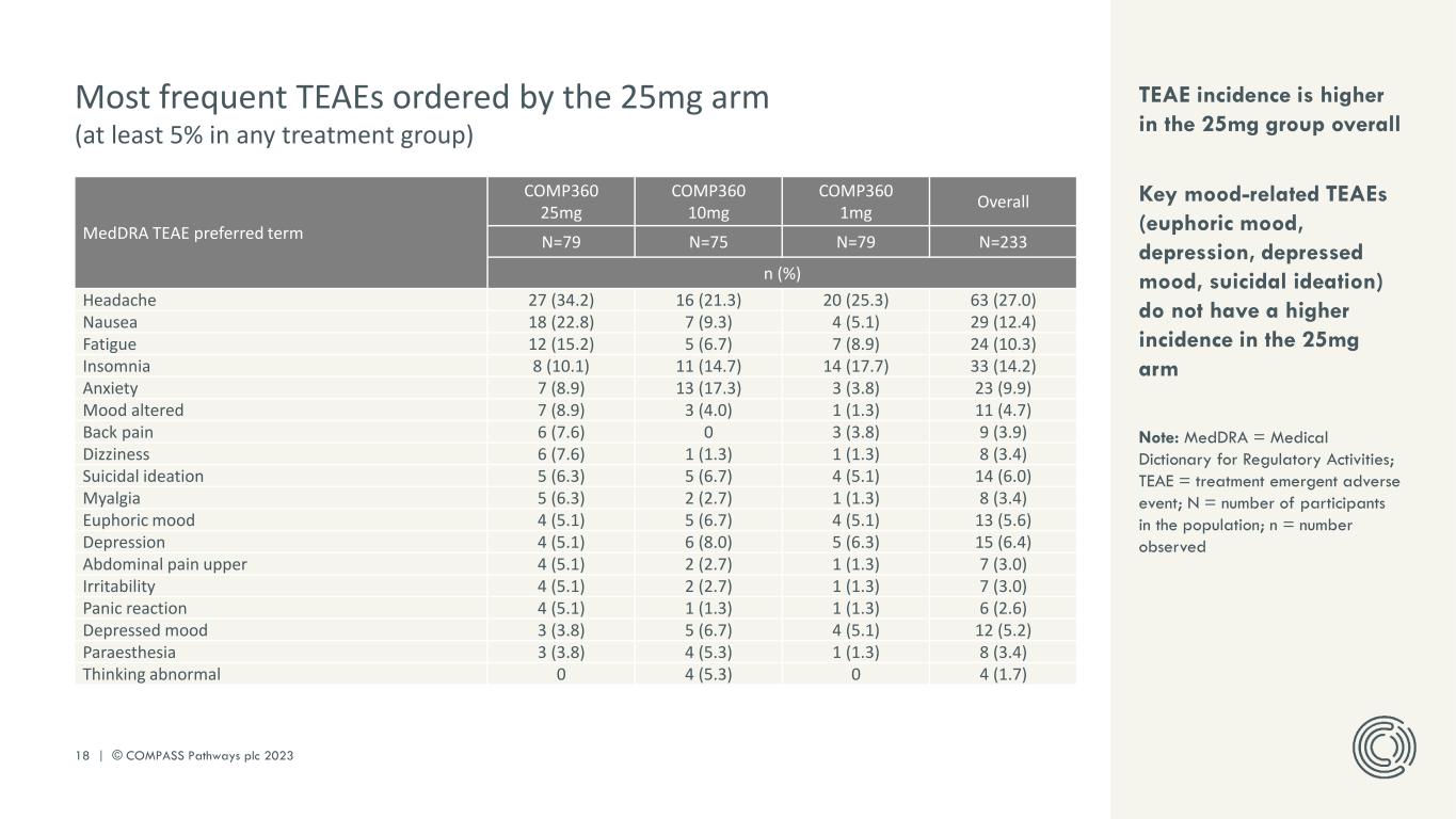 17 | © COMPASS Pathways plc 2023 Appendix