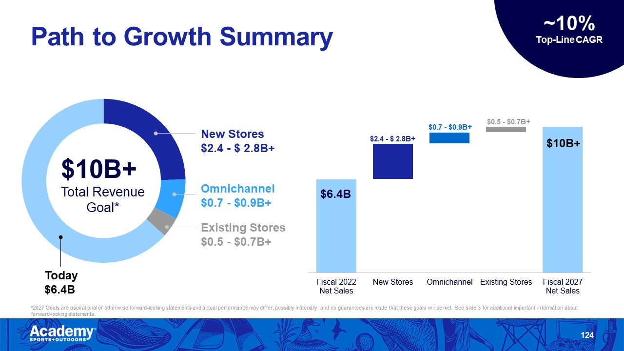Path to Growth Summary  124  ~10%   Top-Line CAGR  $10B+  $6.4B  New Stores  Omni-  channel  $10B+   Total Revenue Goal*  Omnichannel  $0.7 - $0.9B+  Existing Stores  $0.5 - $0.7B+  New Stores   $2.4 - $ 2.8B+  Today  $6.4B  $2.4 - $ 2.8B+  $0.7 - $0.9B+  $0.5 - $0.7B+  *2027 Goals are aspirational or otherwise forward-looking statements and actual performance may differ, possibly materially, and no guarantees are made that these goals will be met. See slide 3 for additional important information about forward-looking statements.