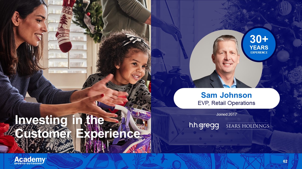Investing in the Customer Experience  62  Sam JohnsonEVP, Retail Operations  30+  YEARSEXPERIENCE  Joined 2017