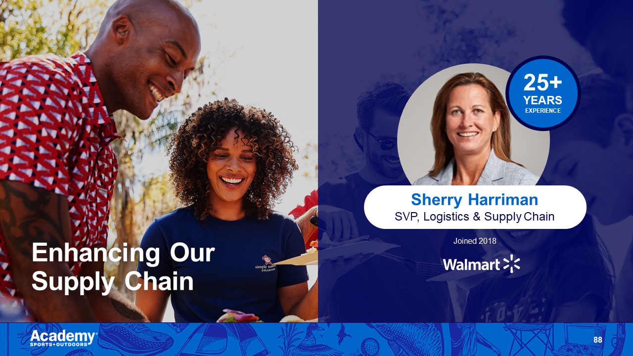 Enhancing Our Supply Chain  88  Sherry HarrimanSVP, Logistics & Supply Chain  25+  YEARSEXPERIENCE  Joined 2018