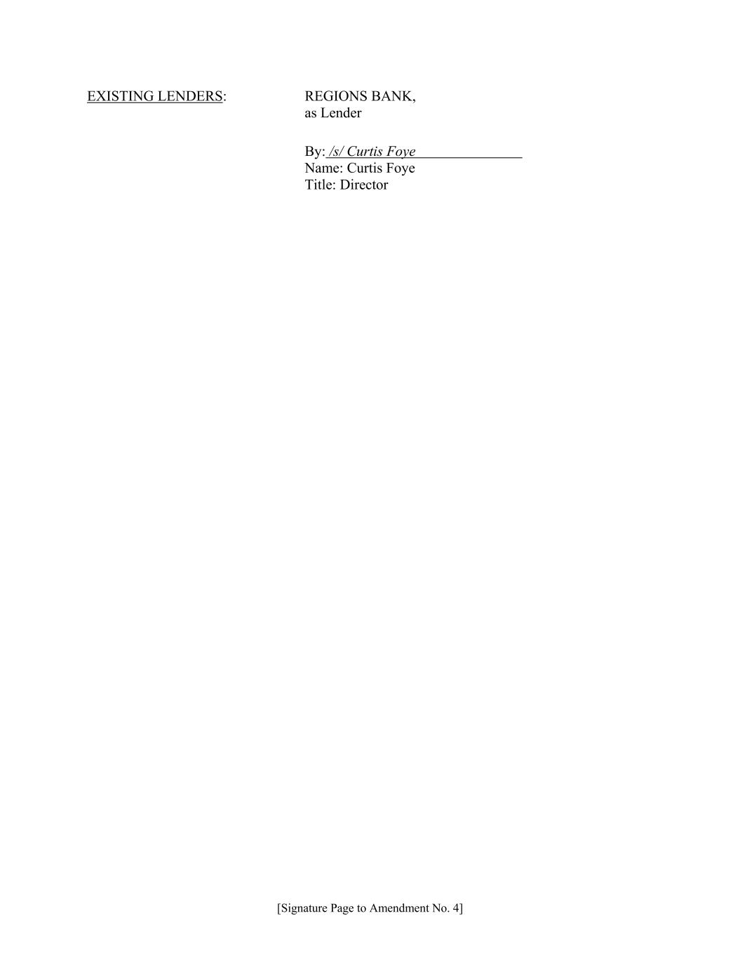 [Signature Page to Amendment No. 4] EXISTING LENDERS: REGIONS BANK, as Lender By: /s/ Curtis Foye Name: Curtis Foye Title: Director