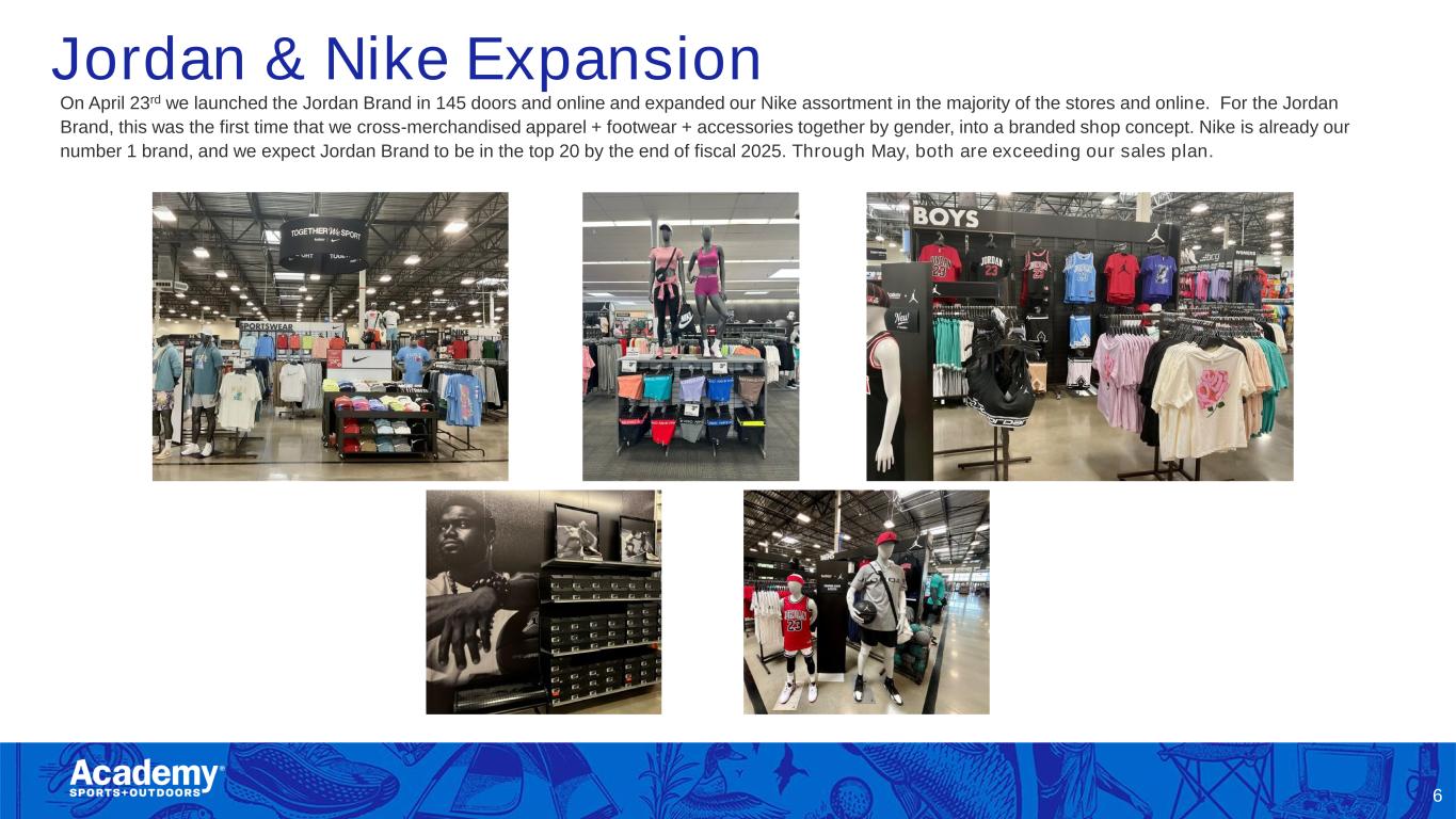 Jordan & Nike Expansion On April 23rd we launched the Jordan Brand in 145 doors and online and expanded our Nike assortment in the majority of the stores and online. For the Jordan Brand, this was the first time that we cross-merchandised apparel + footwear + accessories together by gender, into a branded shop concept. Nike is already our number 1 brand, and we expect Jordan Brand to be in the top 20 by the end of fiscal 2025. Through May, both are exceeding our sales plan. 6