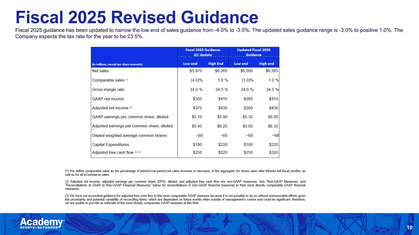 Fiscal 2025 Revised Guidance Fiscal 2025 guidance has been updated to narrow the low end of sales guidance from -4.0% to -3.0%. The updated sales guidance range is -3.0% to positive 1.0%. The Company expects the tax rate for the year to be 23.5%. 10