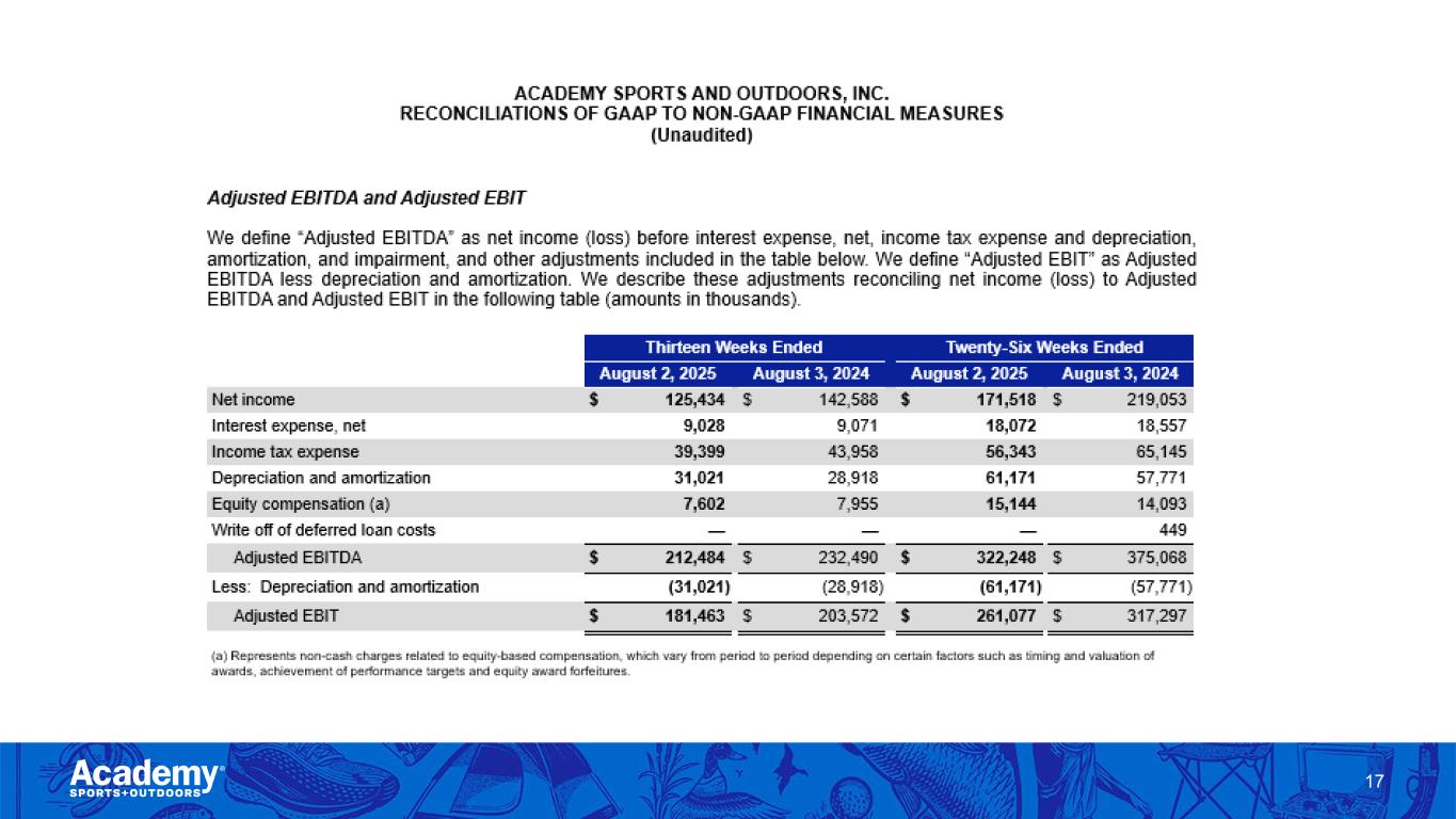 GAAP to Non-GAAP Reconciliations Adjusted Net Income, Adjusted Earnings per Common Share, Adjusted EBITDA, Adjusted EBIT and Adjusted Free Cash Flow, have been presented in this presentation as supplemental measures of financial performance that are not required by, or presented in accordance with, generally accepted accounting principles (“GAAP”). These non- GAAP measures have limitations as analytical tools. For information on these limitations, as well as information on why management believes these non-GAAP measures are useful, please see our Annual Report on Form 10-K for the fiscal year ended February 1, 2025 (the "Annual Report") filed on March 20, 2025, as such limitations and information may be updated from time to time in our periodic filings with the Securities and Exchange Commission (the "SEC"), which are accessible on the SEC's website at www.sec.gov. We compensate for these limitations by primarily relying on our GAAP results in addition to using these non-GAAP measures supplementally. 16