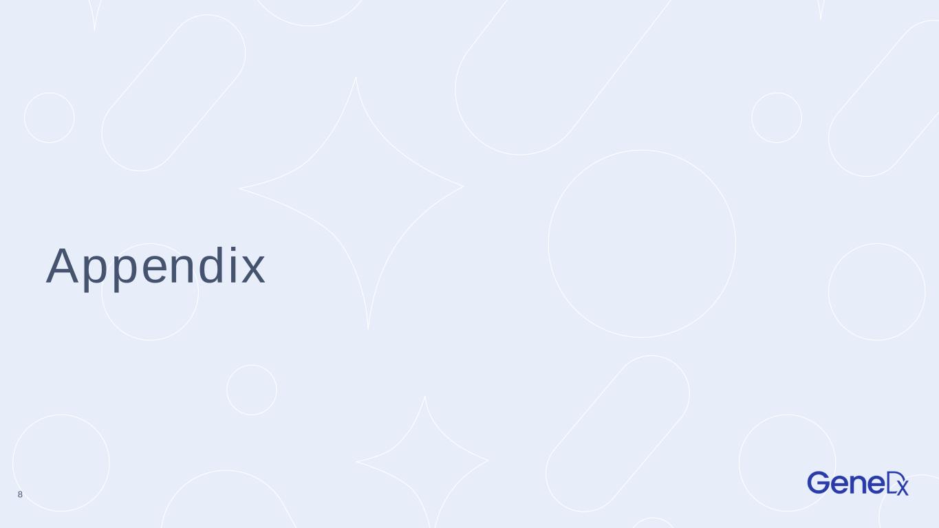2024 Guidance Update Drive full year 2024 revenues between $255 to $265 million (previous guidance was between $235 to $245 million) Expand full year 2024 adjusted gross margin profile to at least 60% (no change) Use between $65 to $70 million of net cash for full year 2024 (previous guidance was between $70 to $80 million) Turn profitable in 2025 (no change) 7 1. Total company results include the combination of the GeneDx diagnostic business revenues and the data and information revenues from the Legacy Sema4 business. ​