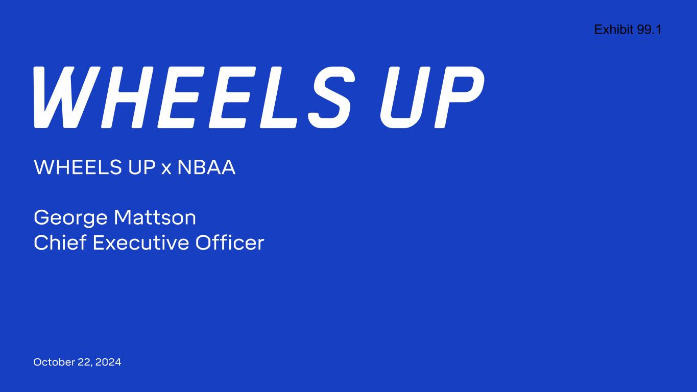 WHEELS UP x NBAA George Mattson Chief Executive Officer October 22, 2024 Exhibit 99.1