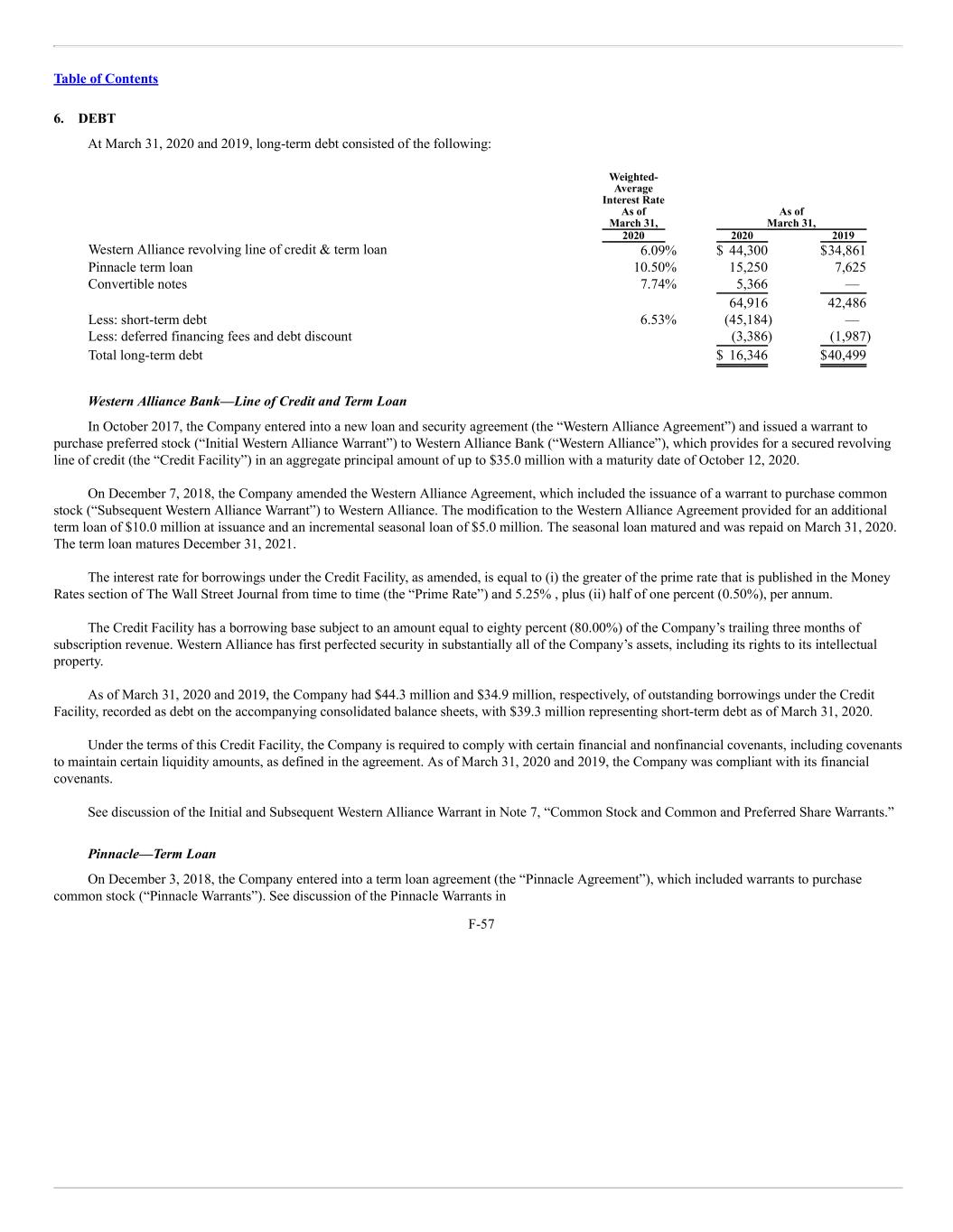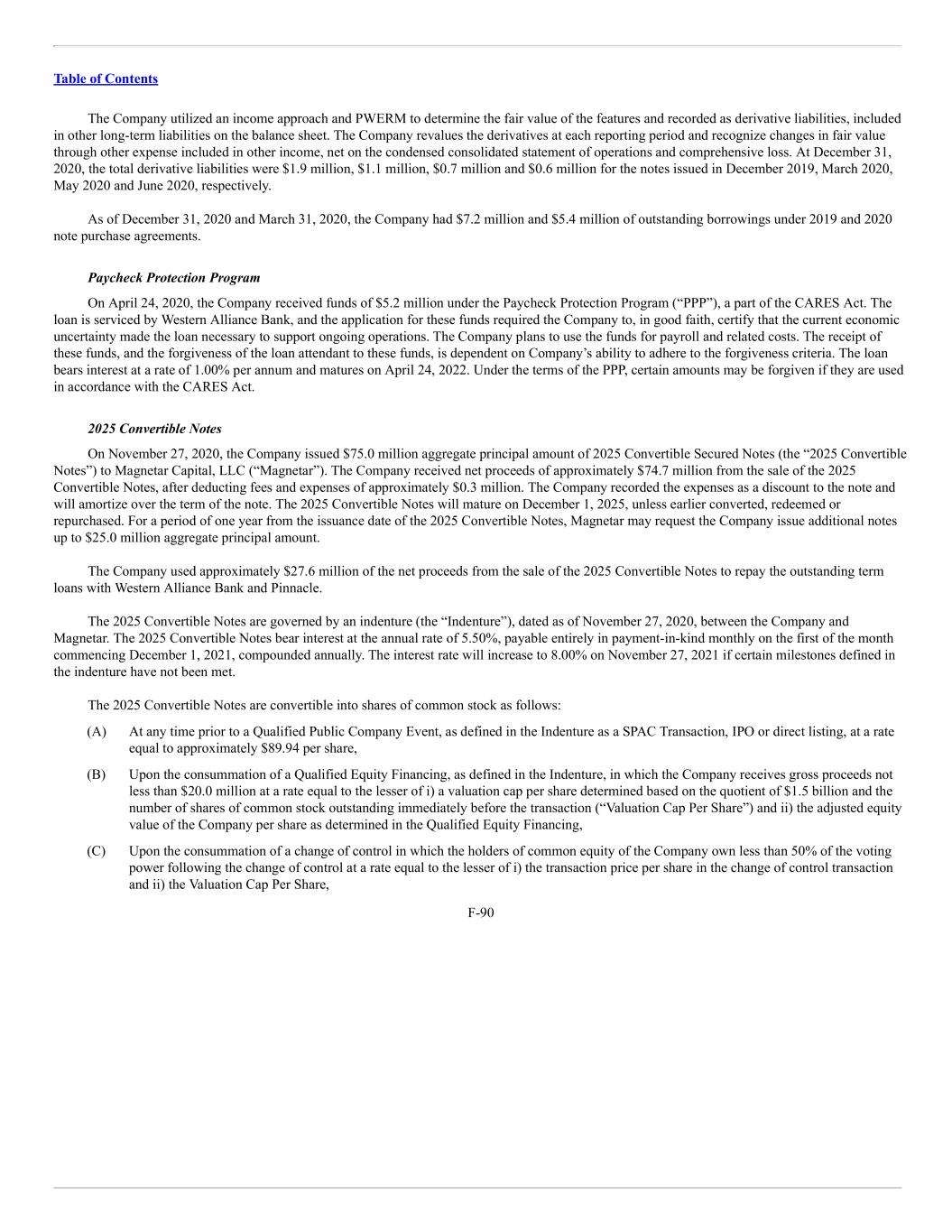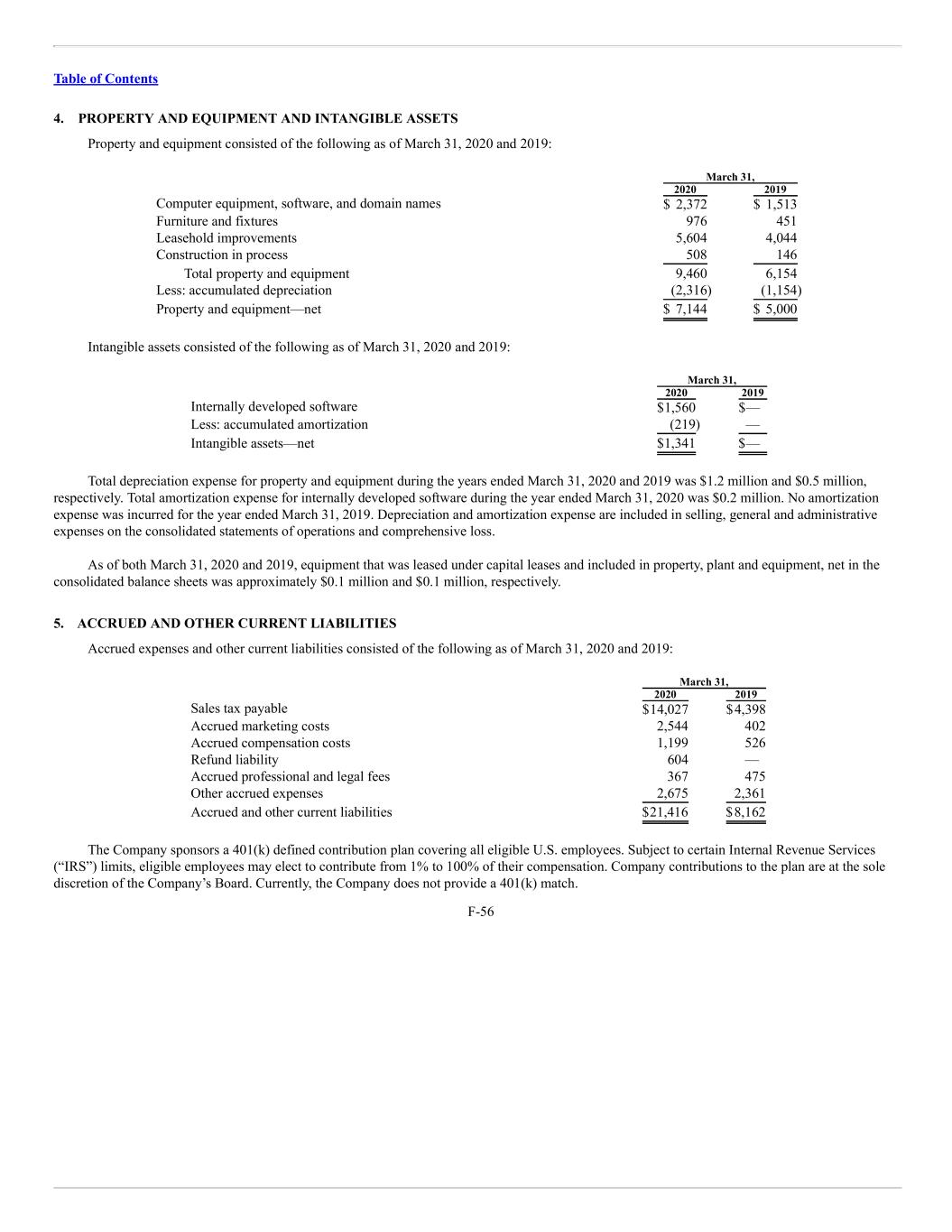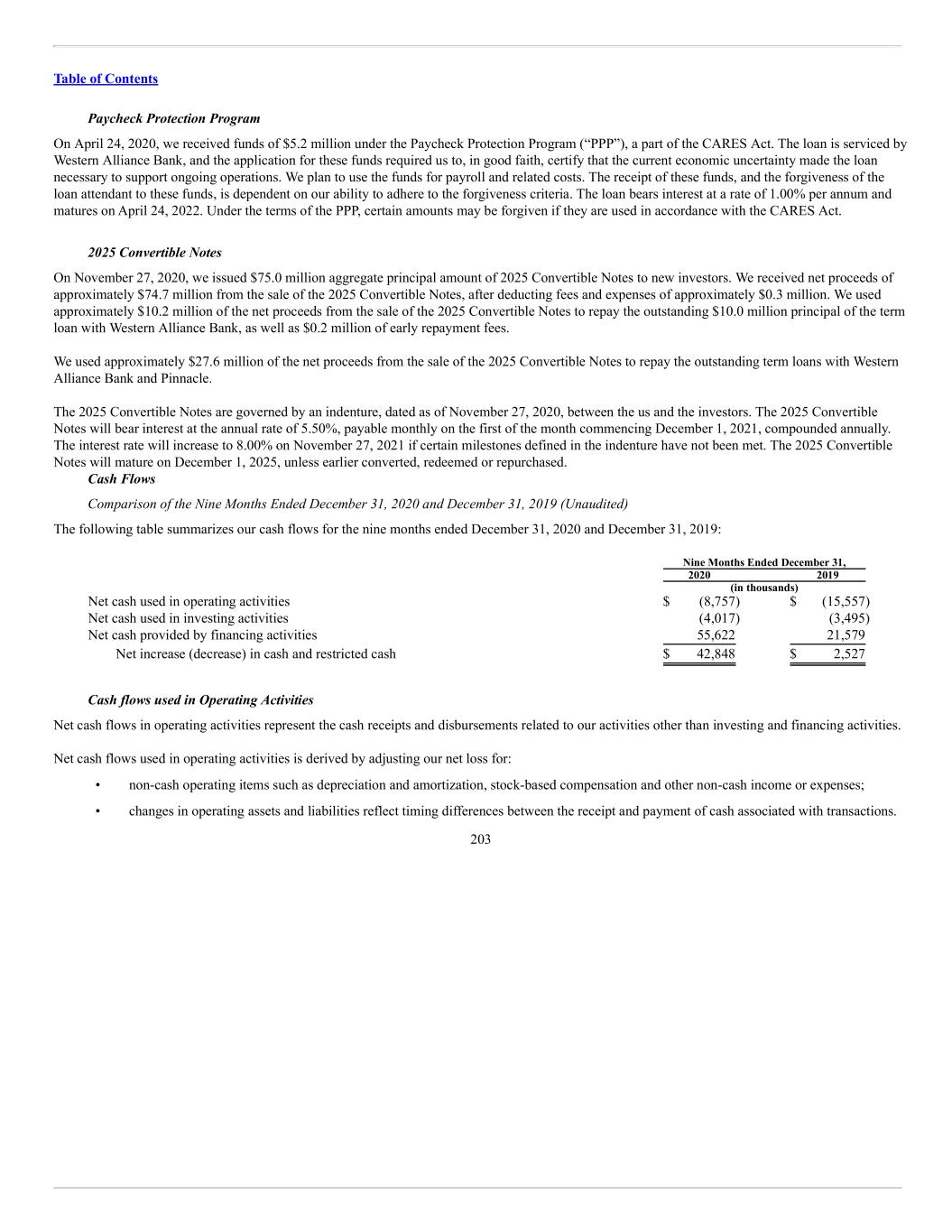 Table of Contents      As of December 31,     As of March 31,        2020      2020      2019   Consolidated Balance Sheet Data:          Cash    $ 51,896     $ 9,676    $ 11,341 Total assets      151,865       64,689      46,545 Total liabilities      246,693       140,089      92,550 Total redeemable convertible preferred stock      59,987       59,987      59,987 Total stockholders’ deficit      (154,815)      (135,387)      (105,992)    34