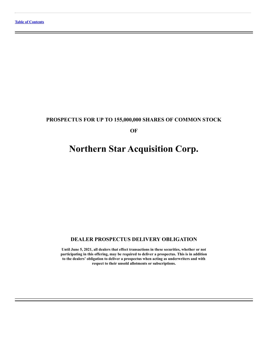Table of Contents    PROSPECTUS FOR UP TO 155,000,000 SHARES OF COMMON STOCK OF Northern Star Acquisition Corp. DEALER PROSPECTUS DELIVERY OBLIGATION Until June 5, 2021, all dealers that effect transactions in these securities, whether or not participating in this offering, may be required to deliver a prospectus. This is in addition to the dealers’ obligation to deliver a prospectus when acting as underwriters and with respect to their unsold allotments or subscriptions.