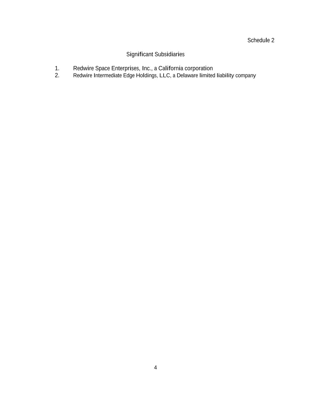 4 Schedule 2 Significant Subsidiaries 1. Redwire Space Enterprises, Inc., a California corporation 2. Redwire Intermediate Edge Holdings, LLC, a Delaware limited liability company