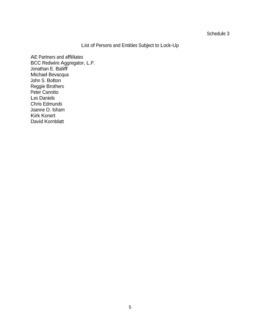 5 Schedule 3 List of Persons and Entities Subject to Lock-Up AE Partners and affiliates BCC Redwire Aggregator, L.P. Jonathan E. Baliff Michael Bevacqua John S. Bolton Reggie Brothers Peter Cannito Les Daniels Chris Edmunds Joanne O. Isham Kirk Konert David Kornblatt