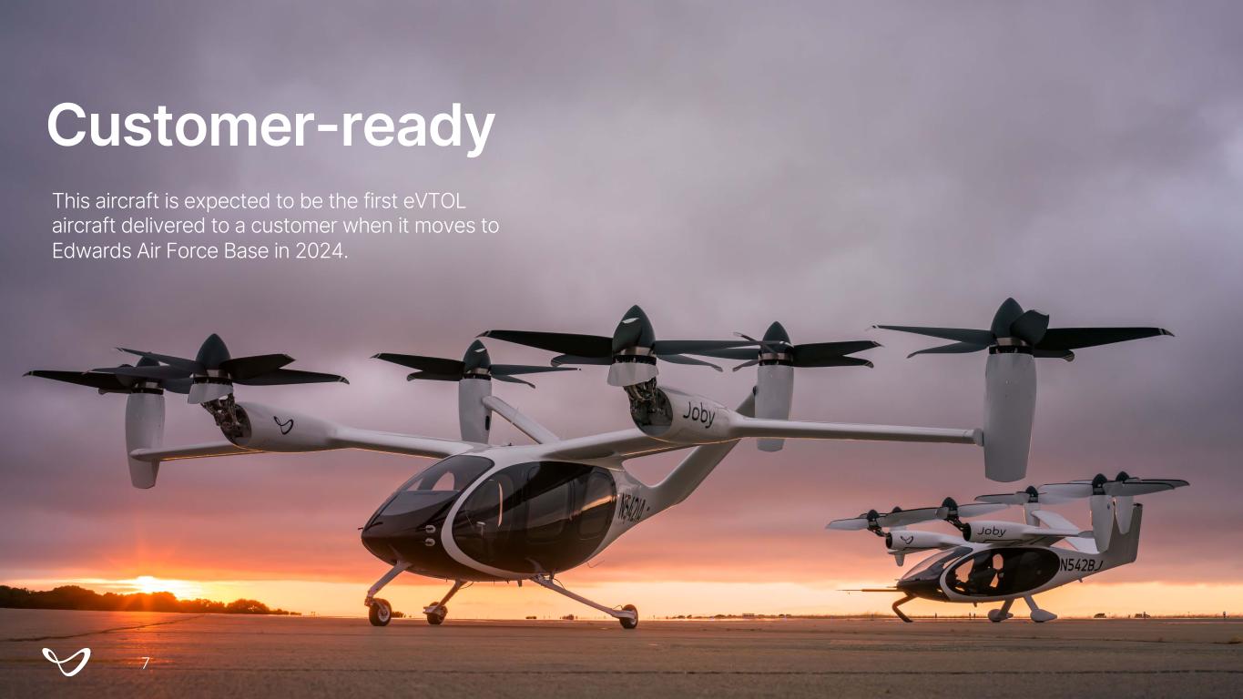 This aircraft is expected to be the first eVTOL aircraft delivered to a customer when it moves to Edwards Air Force Base in 2024. Customer-ready 7