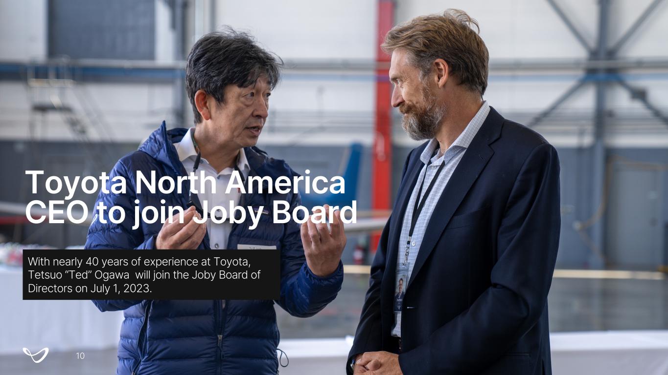 Toyota North America CEO to join Joby Board With nearly 40 years of experience at Toyota, Tetsuo “Ted” Ogawa will join the Joby Board of Directors on July 1, 2023. 10