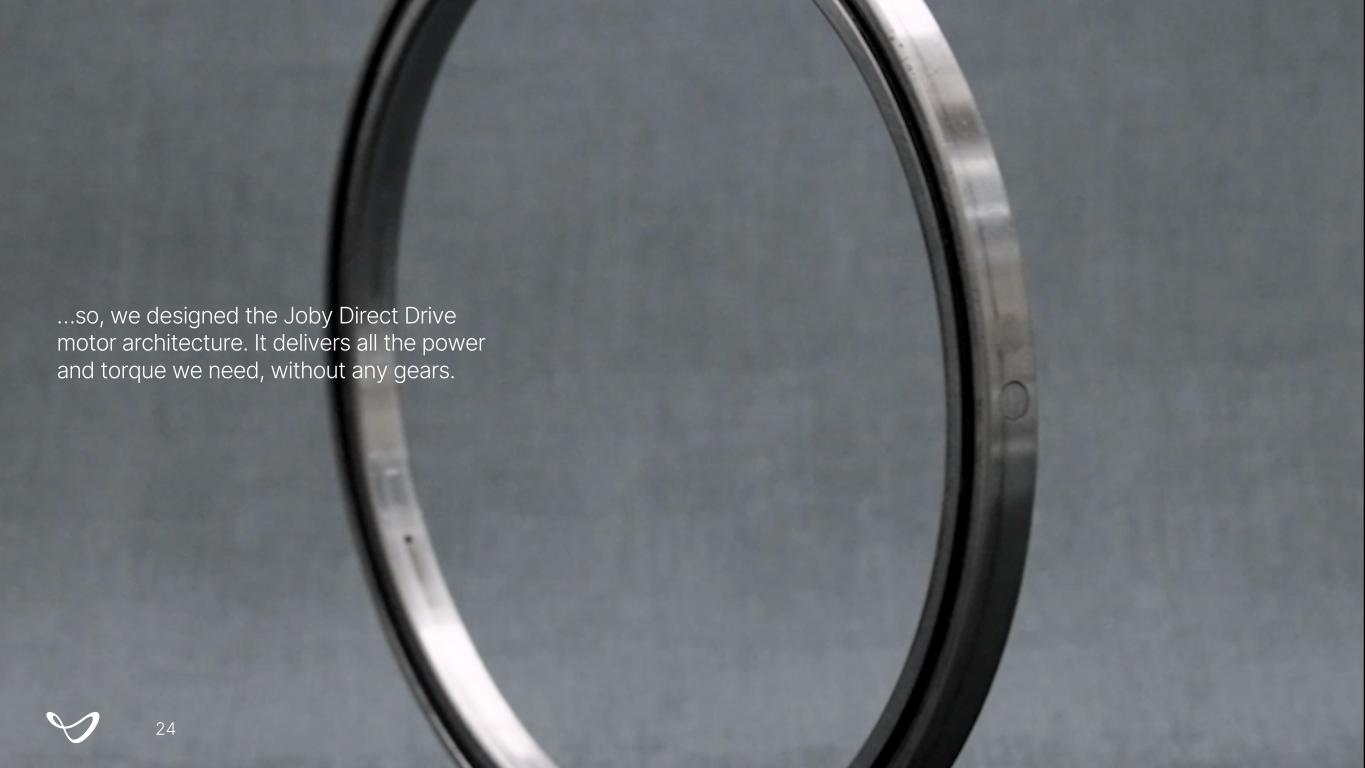…so, we designed the Joby Direct Drive motor architecture. It delivers all the power and torque we need, without any gears. 24