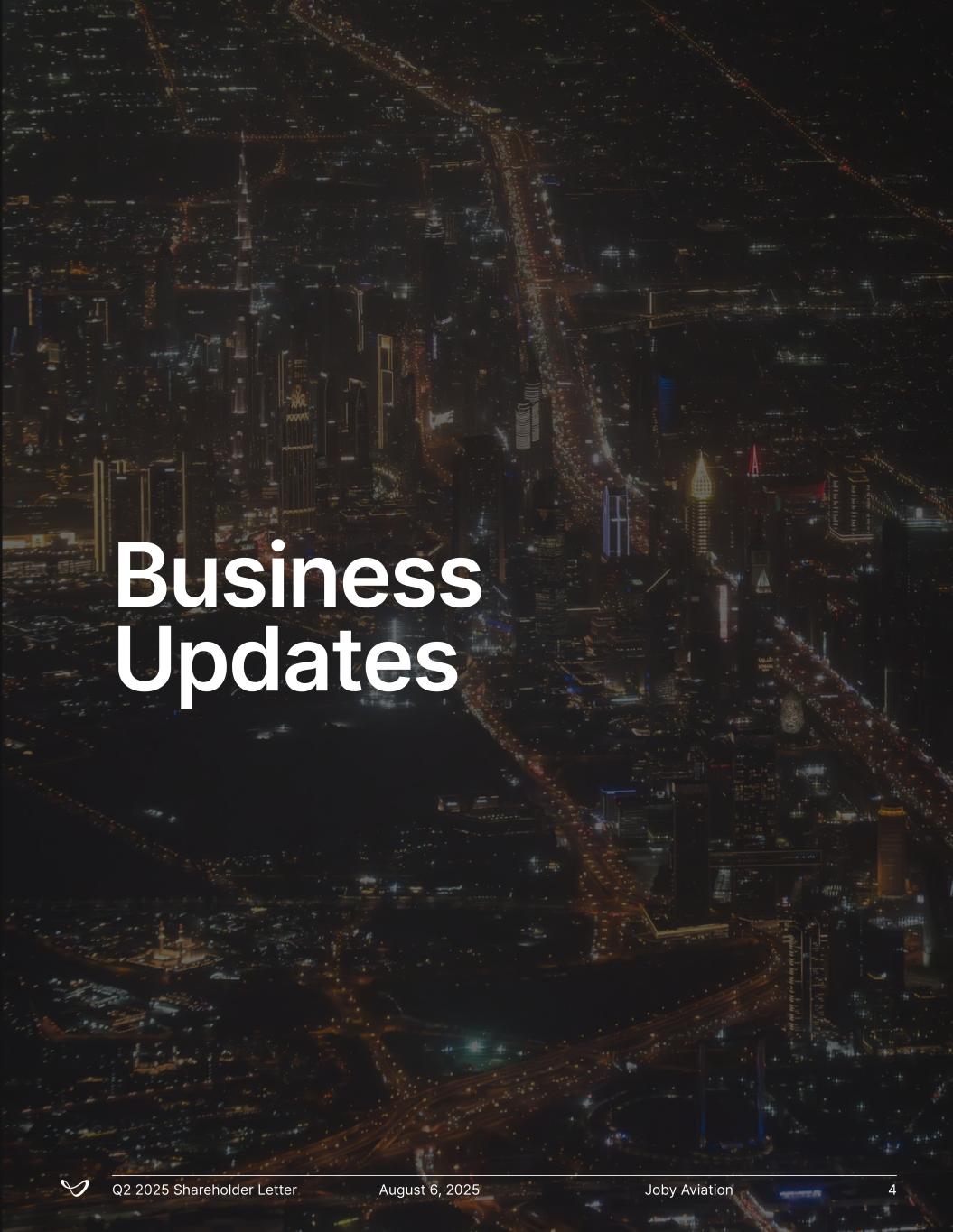 Joby AviationQ2 2025 Shareholder Letter August 6, 2025 4 Business Updates