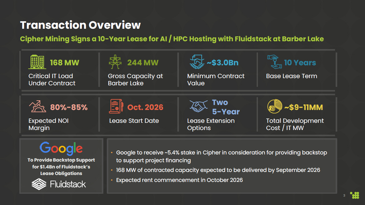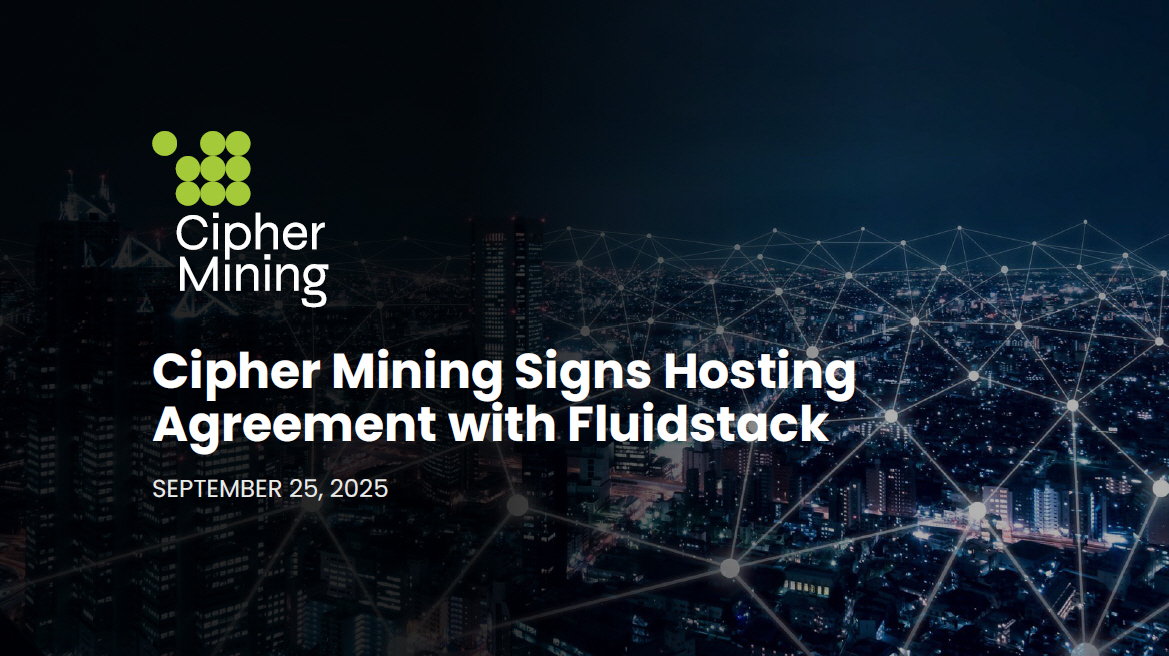 Cipher Mining Signs Hosting Agreement with Fluidstack SEPTEMBER 25, 2025