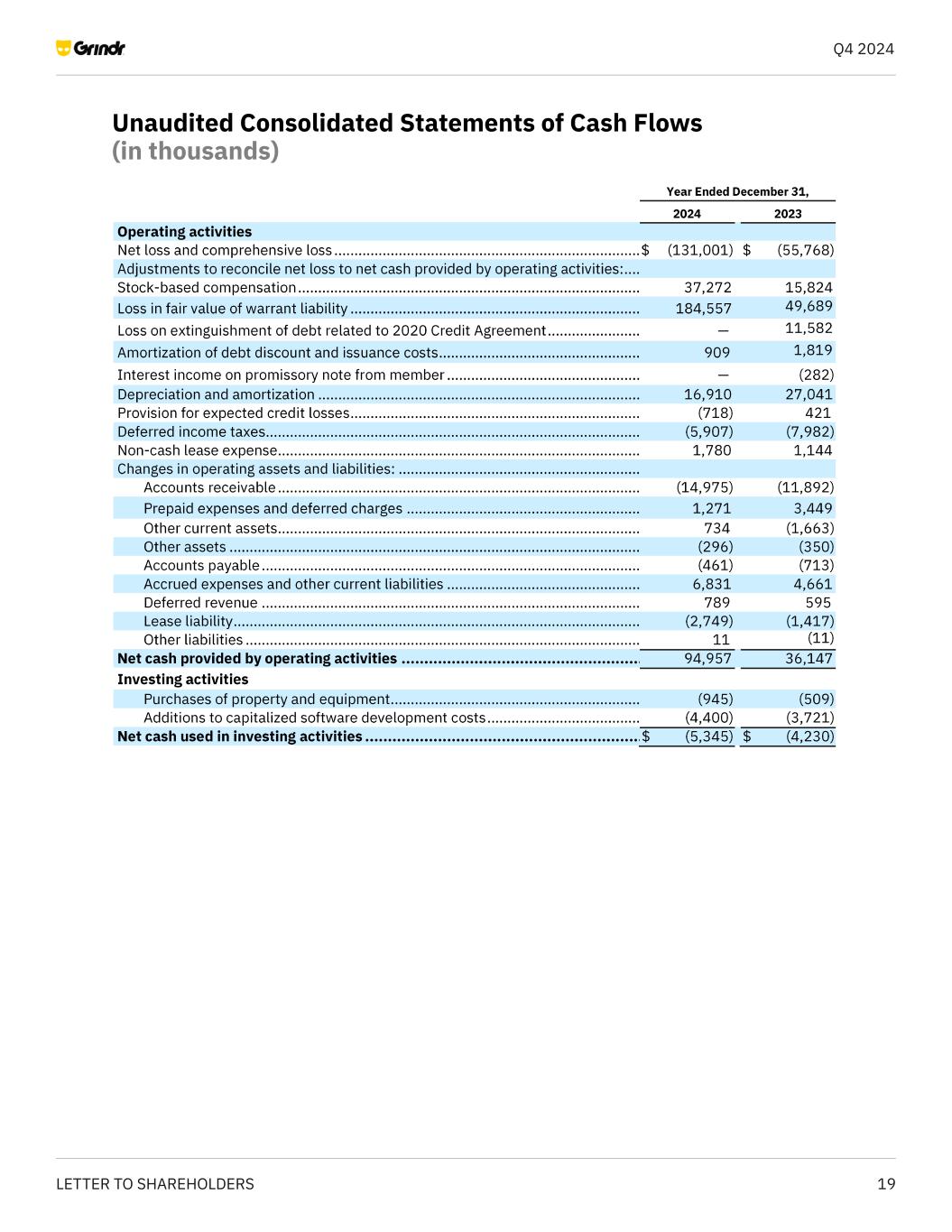 20LETTER TO SHAREHOLDERS Q4 2024 Unaudited Consolidated Statements of Cash Flows (continued) (in thousands)