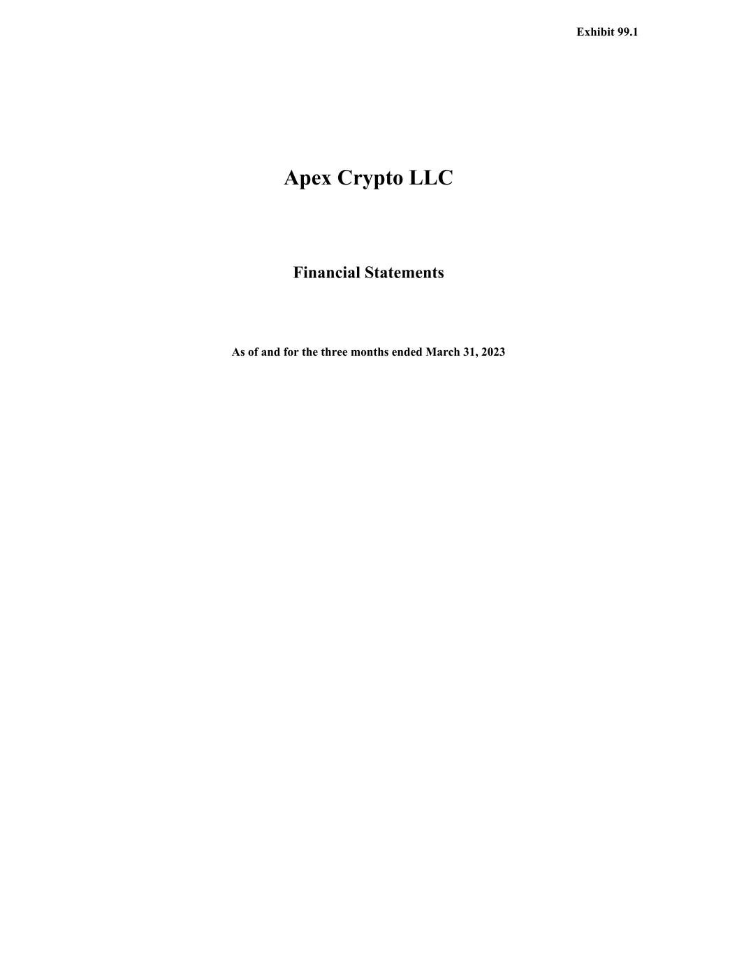Apex Crypto LLC Financial Statements As of and for the three months ended March 31, 2023 Exhibit 99.1