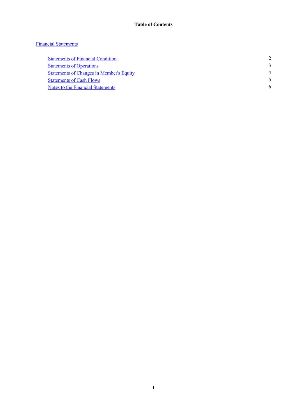 Table of Contents Financial Statements Statements of Financial Condition 2 Statements of Operations 3 Statements of Changes in Member's Equity 4 Statements of Cash Flows 5 Notes to the Financial Statements 6 1