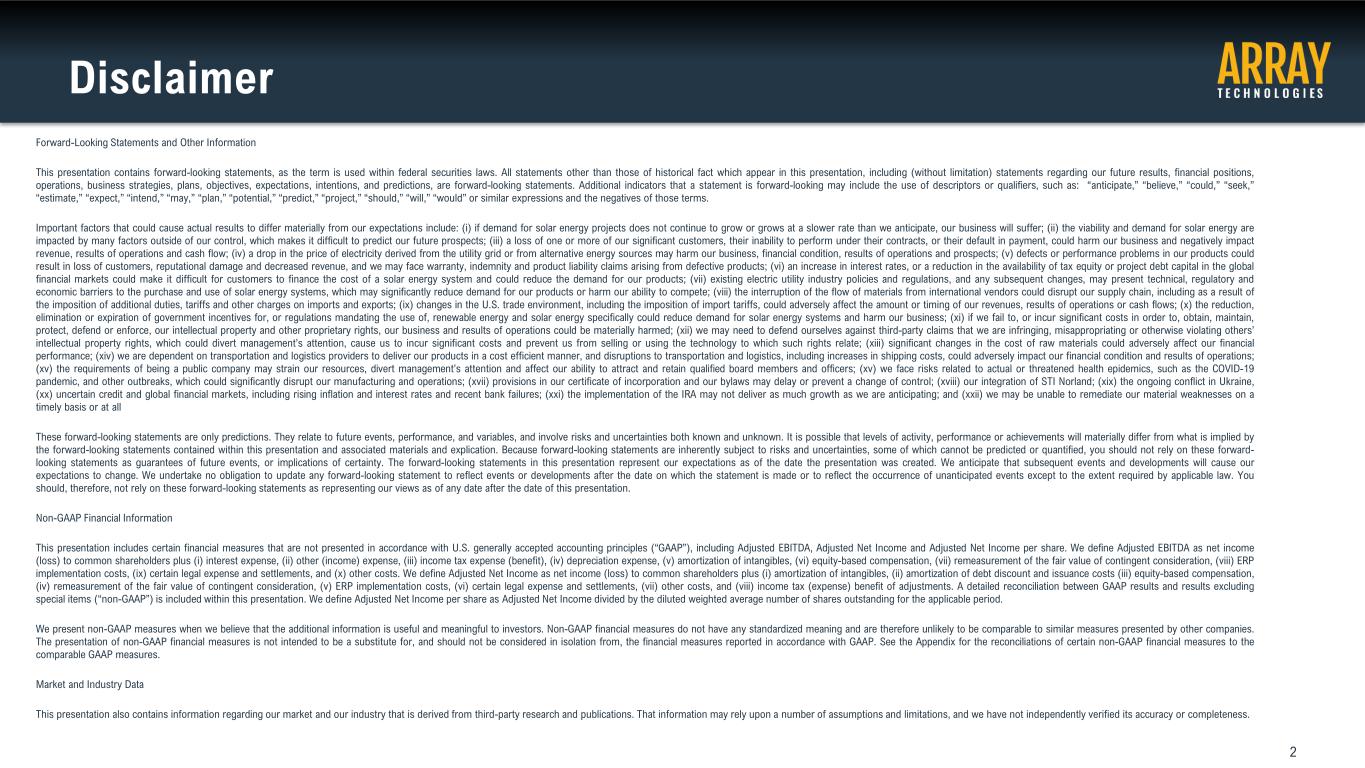 1 Array Technologies 4Q 2022 Earnings Call March 21, 2023