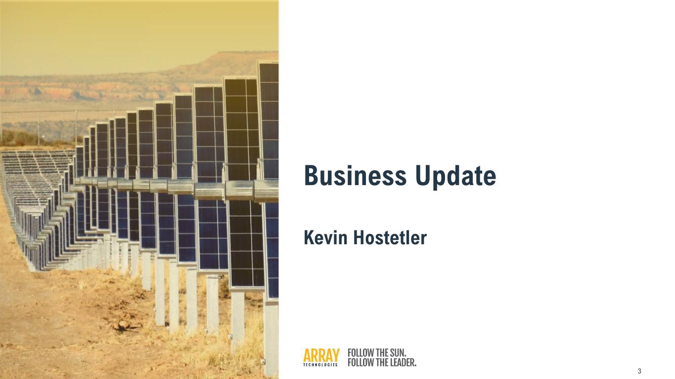 2 Disclaimer Forward-Looking Statements and Other Information This presentation contains forward-looking statements, as the term is used within federal securities laws. All statements other than those of historical fact which appear in this presentation, including (without limitation) statements regarding our future results, financial positions, operations, business strategies, plans, objectives, expectations, intentions, and predictions, are forward-looking statements. Additional indicators that a statement is forward-looking may include the use of descriptors or qualifiers, such as: “anticipate,” “believe,” “could,” “seek,” “estimate,” “expect,” “intend,” “may,” “plan,” “potential,” “predict,” “project,” “should,” “will,” “would” or similar expressions and the negatives of those terms. Important factors that could cause actual results to differ materially from our expectations include: (i) if demand for solar energy projects does not continue to grow or grows at a slower rate than we anticipate, our business will suffer; (ii) the viability and demand for solar energy are impacted by many factors outside of our control, which makes it difficult to predict our future prospects; (iii) a loss of one or more of our significant customers, their inability to perform under their contracts, or their default in payment, could harm our business and negatively impact revenue, results of operations and cash flow; (iv) a drop in the price of electricity derived from the utility grid or from alternative energy sources may harm our business, financial condition, results of operations and prospects; (v) defects or performance problems in our products could result in loss of customers, reputational damage and decreased revenue, and we may face warranty, indemnity and product liability claims arising from defective products; (vi) an increase in interest rates, or a reduction in the availability of tax equity or project debt capital in the global financial markets could make it difficult for customers to finance the cost of a solar energy system and could reduce the demand for our products; (vii) existing electric utility industry policies and regulations, and any subsequent changes, may present technical, regulatory and economic barriers to the purchase and use of solar energy systems, which may significantly reduce demand for our products or harm our ability to compete; (viii) the interruption of the flow of materials from international vendors could disrupt our supply chain, including as a result of the imposition of additional duties, tariffs and other charges on imports and exports; (ix) changes in the U.S. trade environment, including the imposition of import tariffs, could adversely affect the amount or timing of our revenues, results of operations or cash flows; (x) the reduction, elimination or expiration of government incentives for, or regulations mandating the use of, renewable energy and solar energy specifically could reduce demand for solar energy systems and harm our business; (xi) if we fail to, or incur significant costs in order to, obtain, maintain, protect, defend or enforce, our intellectual property and other proprietary rights, our business and results of operations could be materially harmed; (xii) we may need to defend ourselves against third-party claims that we are infringing, misappropriating or otherwise violating others’ intellectual property rights, which could divert management’s attention, cause us to incur significant costs and prevent us from selling or using the technology to which such rights relate; (xiii) significant changes in the cost of raw materials could adversely affect our financial performance; (xiv) we are dependent on transportation and logistics providers to deliver our products in a cost efficient manner, and disruptions to transportation and logistics, including increases in shipping costs, could adversely impact our financial condition and results of operations; (xv) the requirements of being a public company may strain our resources, divert management’s attention and affect our ability to attract and retain qualified board members and officers; (xv) we face risks related to actual or threatened health epidemics, such as the COVID-19 pandemic, and other outbreaks, which could significantly disrupt our manufacturing and operations; (xvii) provisions in our certificate of incorporation and our bylaws may delay or prevent a change of control; (xviii) our integration of STI Norland; (xix) the ongoing conflict in Ukraine, (xx) uncertain credit and global financial markets, including rising inflation and interest rates and recent bank failures; (xxi) the implementation of the IRA may not deliver as much growth as we are anticipating; and (xxii) we may be unable to remediate our material weaknesses on a timely basis or at all These forward-looking statements are only predictions. They relate to future events, performance, and variables, and involve risks and uncertainties both known and unknown. It is possible that levels of activity, performance or achievements will materially differ from what is implied by the forward-looking statements contained within this presentation and associated materials and explication. Because forward-looking statements are inherently subject to risks and uncertainties, some of which cannot be predicted or quantified, you should not rely on these forward- looking statements as guarantees of future events, or implications of certainty. The forward-looking statements in this presentation represent our expectations as of the date the presentation was created. We anticipate that subsequent events and developments will cause our expectations to change. We undertake no obligation to update any forward-looking statement to reflect events or developments after the date on which the statement is made or to reflect the occurrence of unanticipated events except to the extent r
