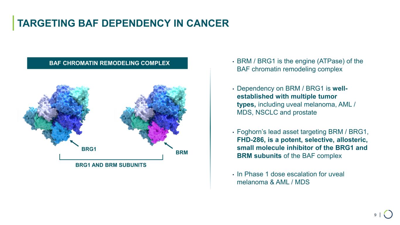 Degrading the BRD9 Subunit of the BAF Complex FHD-286 is a Potent, Selective, Allosteric, Small Molecule Inhibitor of the BRG1 and BRM subunits of the BAF complex IN PHASE 1 DOSE ESCALATION FOR SYNOVIAL SARCOMA AND SMARCB1-LOSS TUMORS FHD-609 is a Selective, Potent, Protein Degrader of the BRD9 Component of the BAF Complex