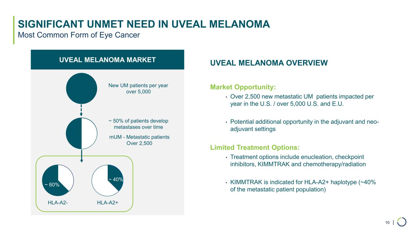 | SIGNIFICANT UNMET NEED IN UVEAL MELANOMA Most Common Form of Eye Cancer 10 UVEAL MELANOMA OVERVIEW Market Opportunity: • Over 2,500 new metastatic UM patients impacted per year in the U.S. / over 5,000 U.S. and E.U. • Potential additional opportunity in the adjuvant and neo- adjuvant settings Limited Treatment Options: • Treatment options include enucleation, checkpoint inhibitors, KIMMTRAK and chemotherapy/radiation • KIMMTRAK is indicated for HLA-A2+ haplotype (~40% of the metastatic patient population) New UM patients per year over 5,000 mUM - Metastatic patients Over 2,500 HLA-A2+ ~ 50% of patients develop metastases over time ~ 40% UVEAL MELANOMA MARKET ~ 40% ~ 60% HLA-A2-