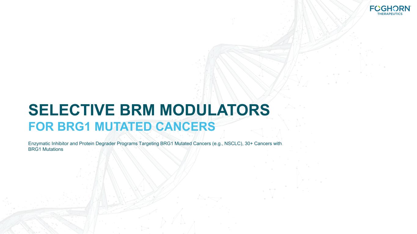 SELECTIVE BRM MODULATORS FOR BRG1 MUTATED CANCERS Enzymatic Inhibitor and Protein Degrader Programs Targeting BRG1 Mutated Cancers (e.g., NSCLC), 30+ Cancers with BRG1 Mutations FHD-286 is a Potent, Selective, Allosteric, Small Molecule Inhibitor of the BRG1 and BRM subunits of the BAF complex